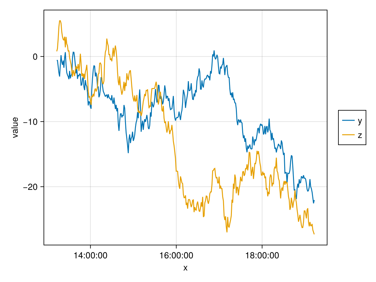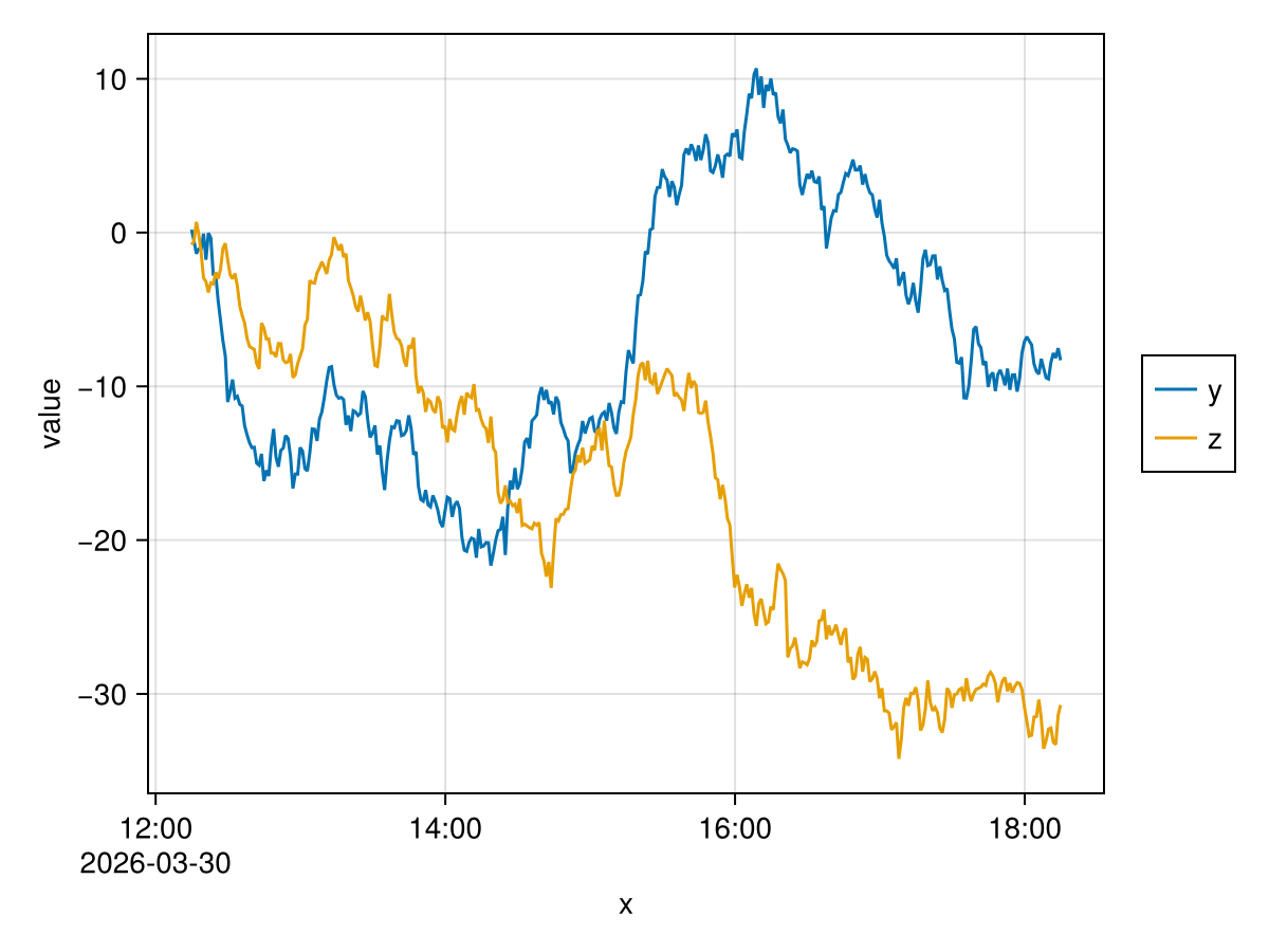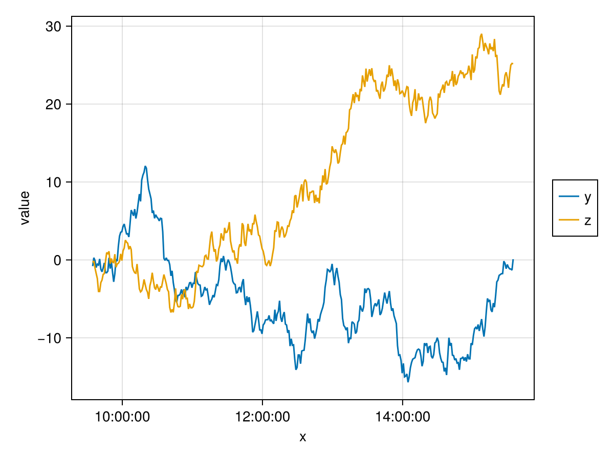 mapping(:x, [:y, :z], color=dims(1) => "series") *