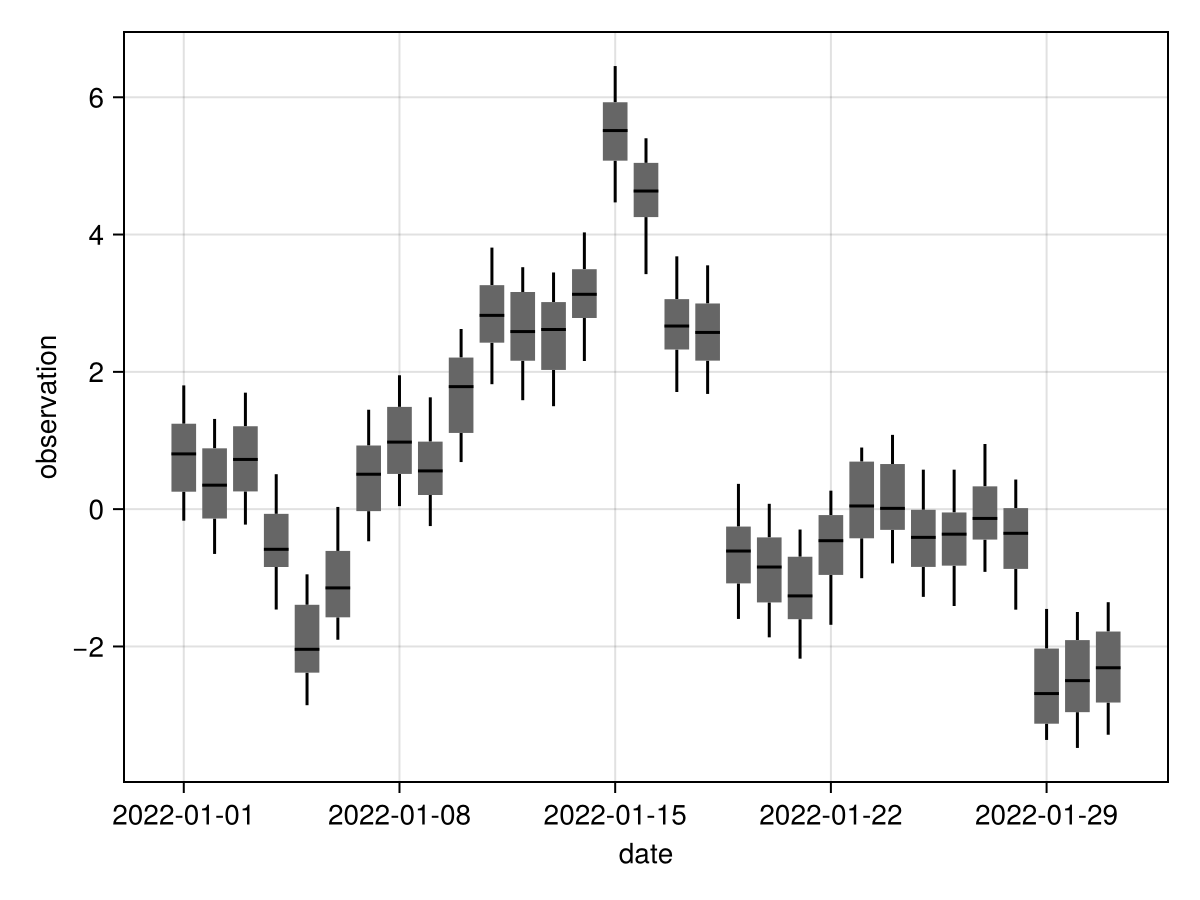 plt = data(df) * mapping(:date, :observation) * visual(BoxPlot)