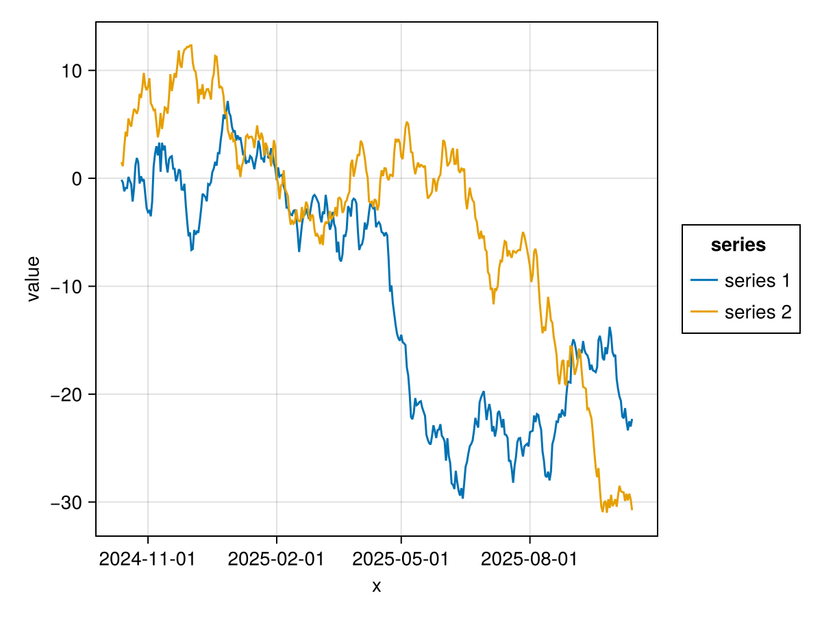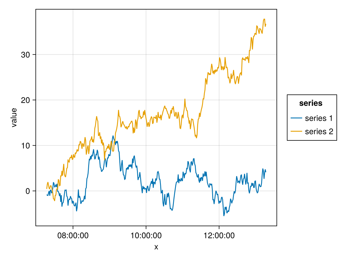 mapping(:x, [:y, :z] .=> "value", color=dims(1) => renamer(labels) =>"series ") *
