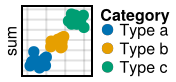 m = pregrouped(x, y, color=c => (t -> "Type " * t ) => "Category") *