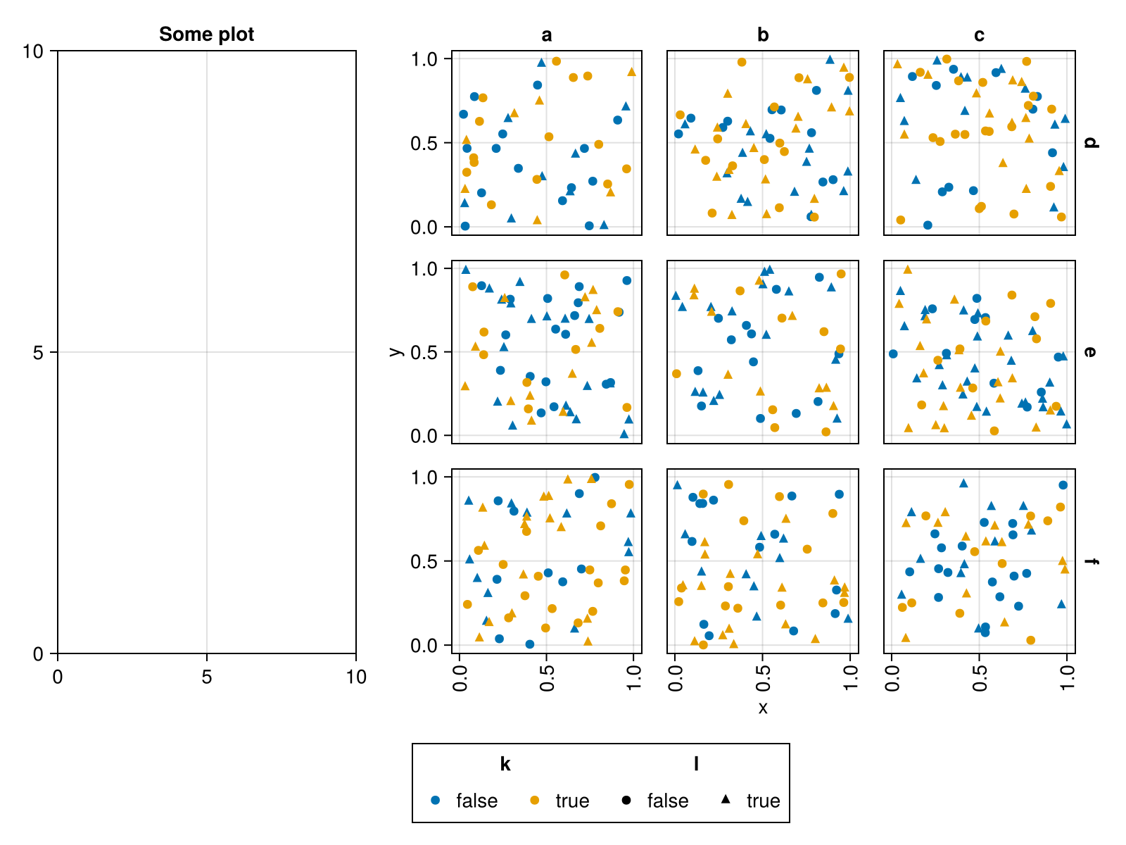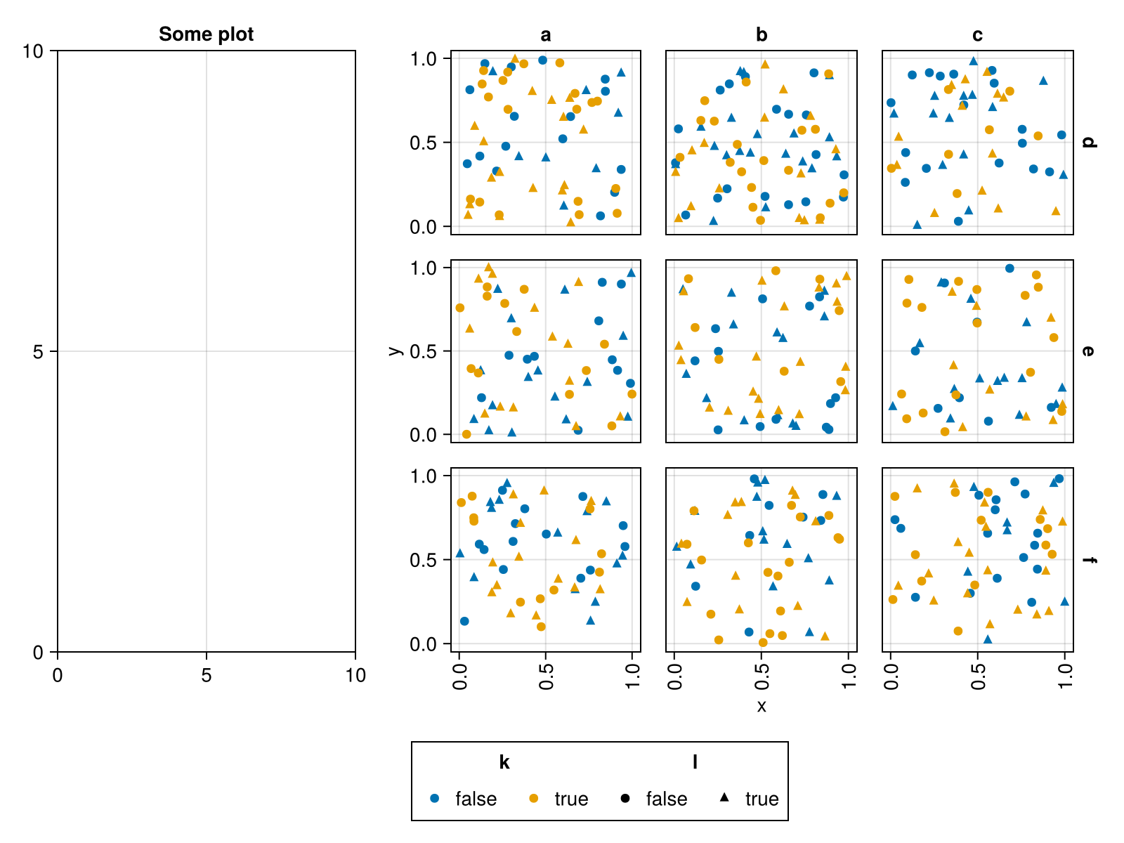 plt = data(df) * mapping(:x, :y, col=:i, row=:j, color=:k, marker=:l)