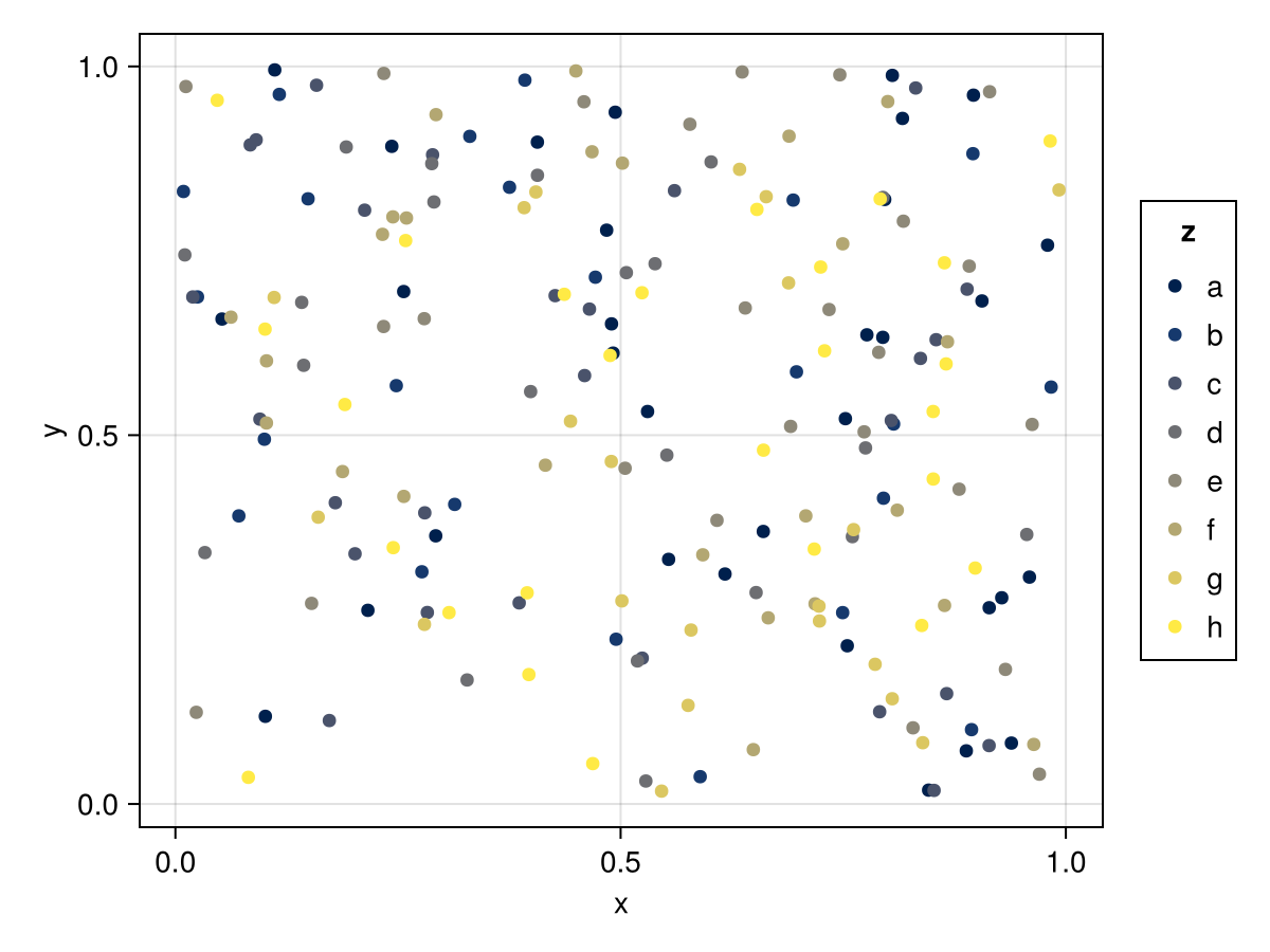 plt = data(df) * mapping(:x, :y, color=:z)