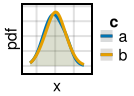 plt = data(df) * mapping(:x, color=:c) * density(bandwidth=0.5) * visual(orientation=:vertical)