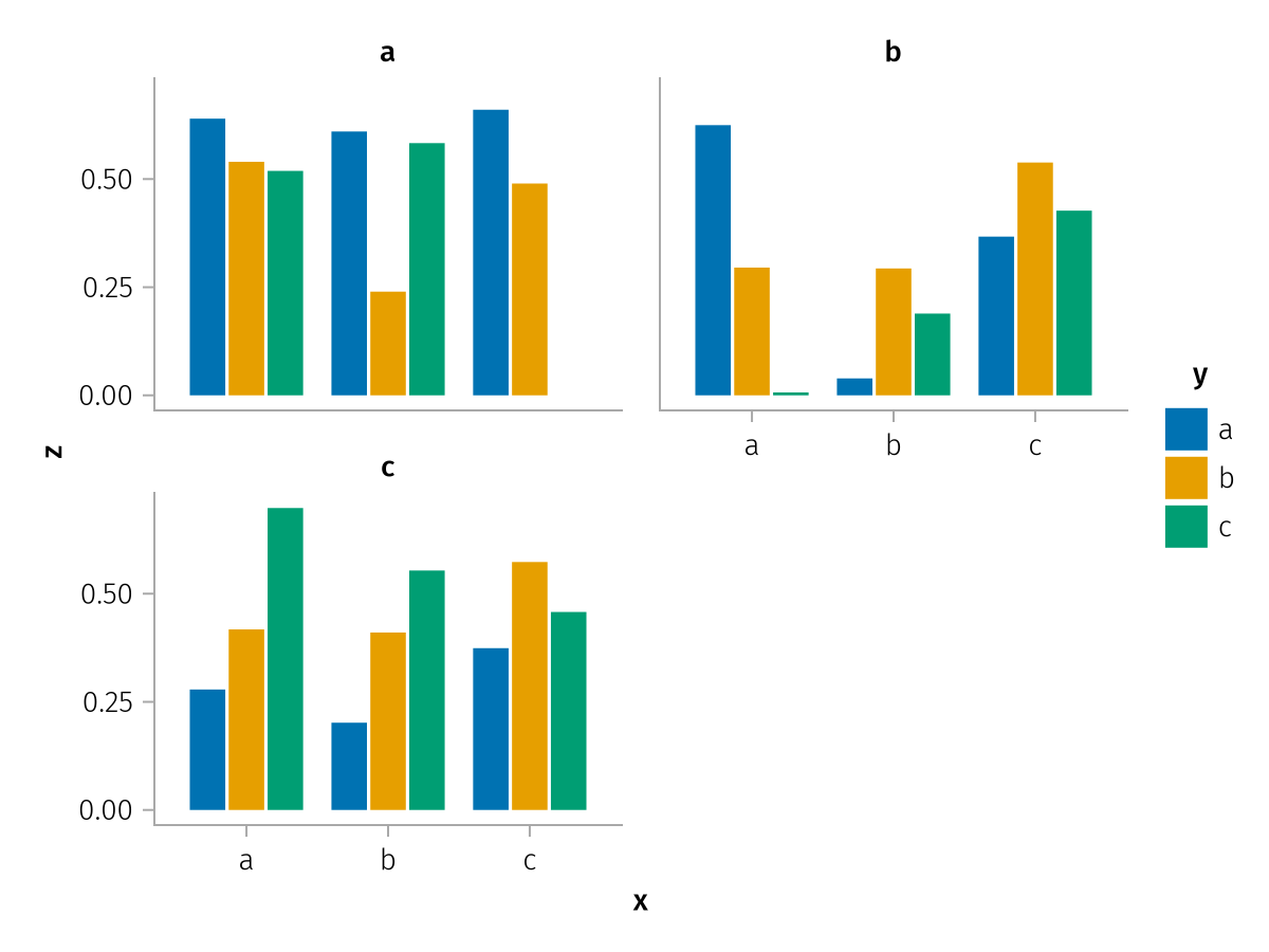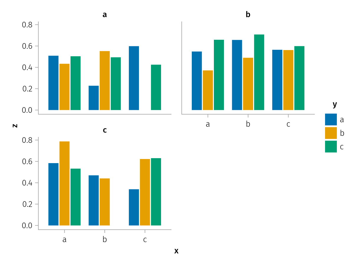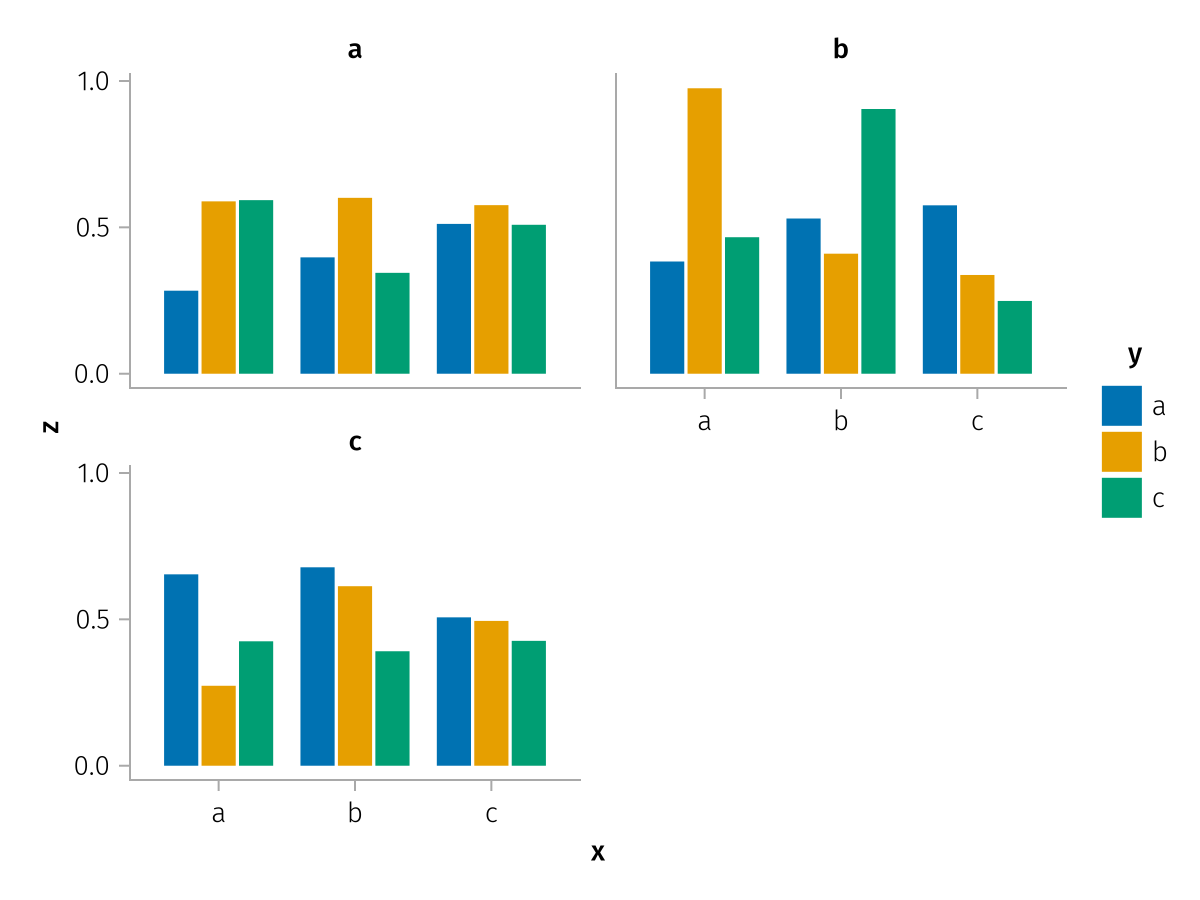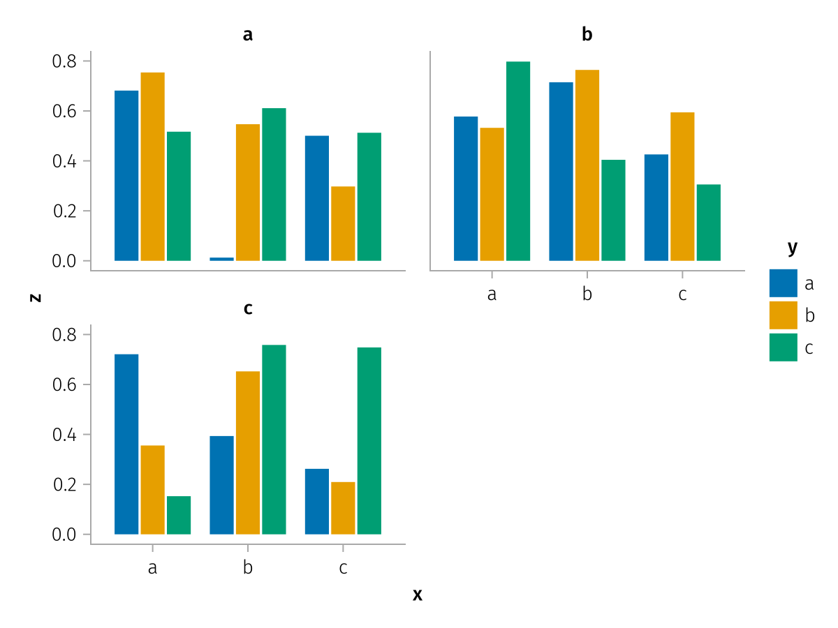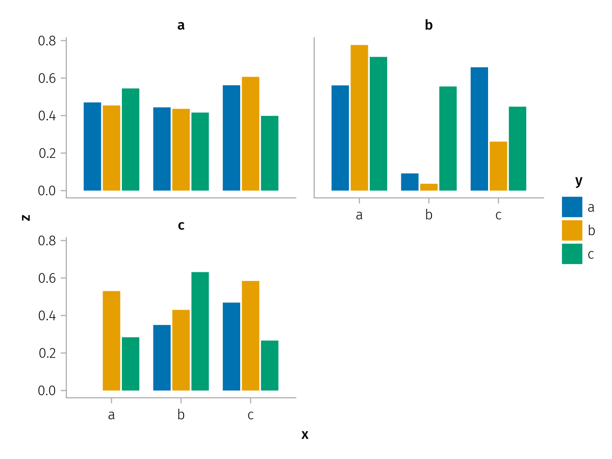specs = data(df) * mapping(:x, :z, layout=:c, color=:y, dodge=:y) * expectation()