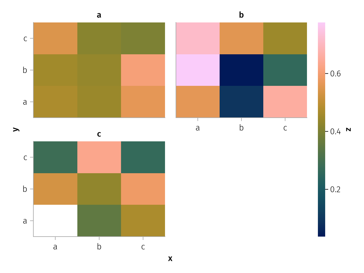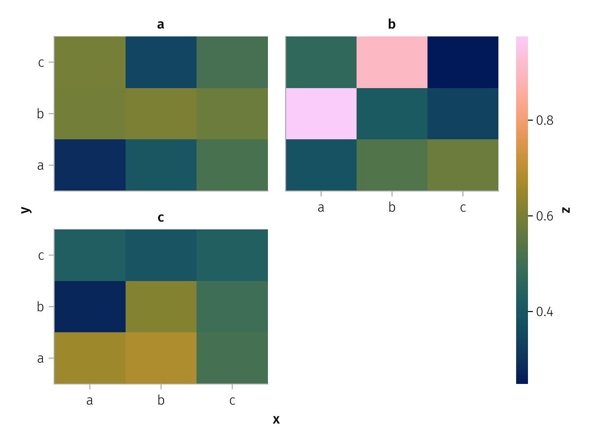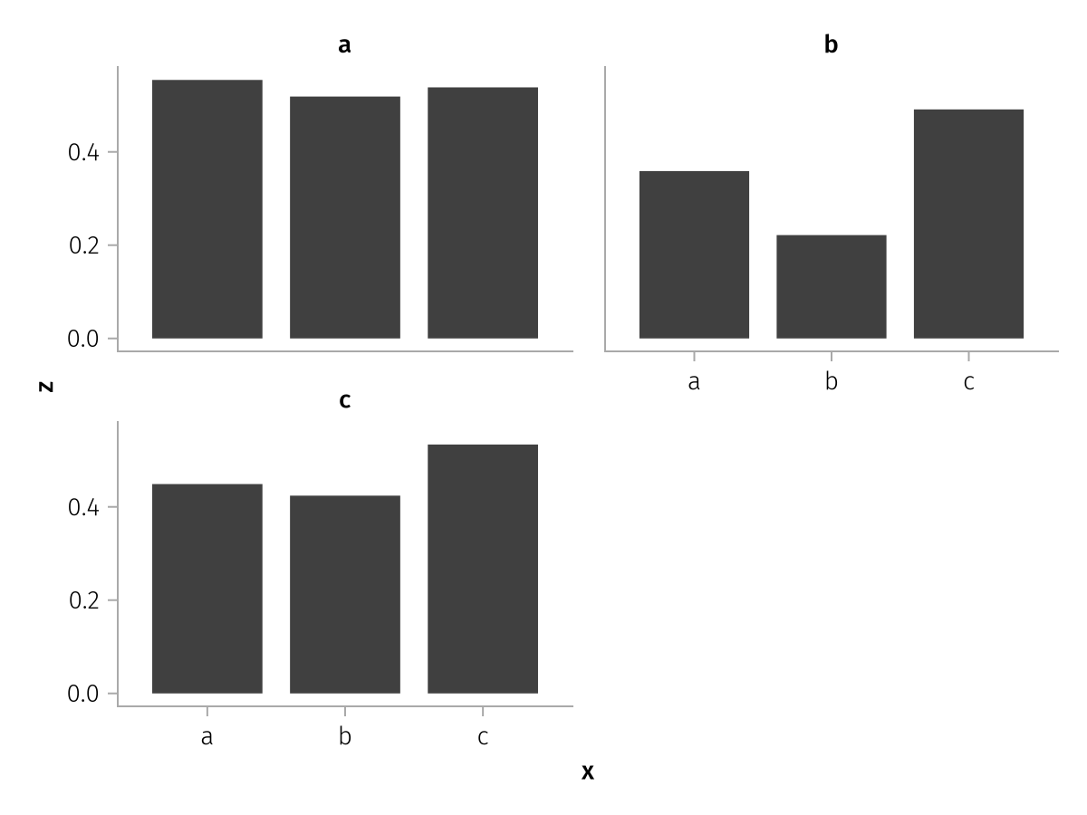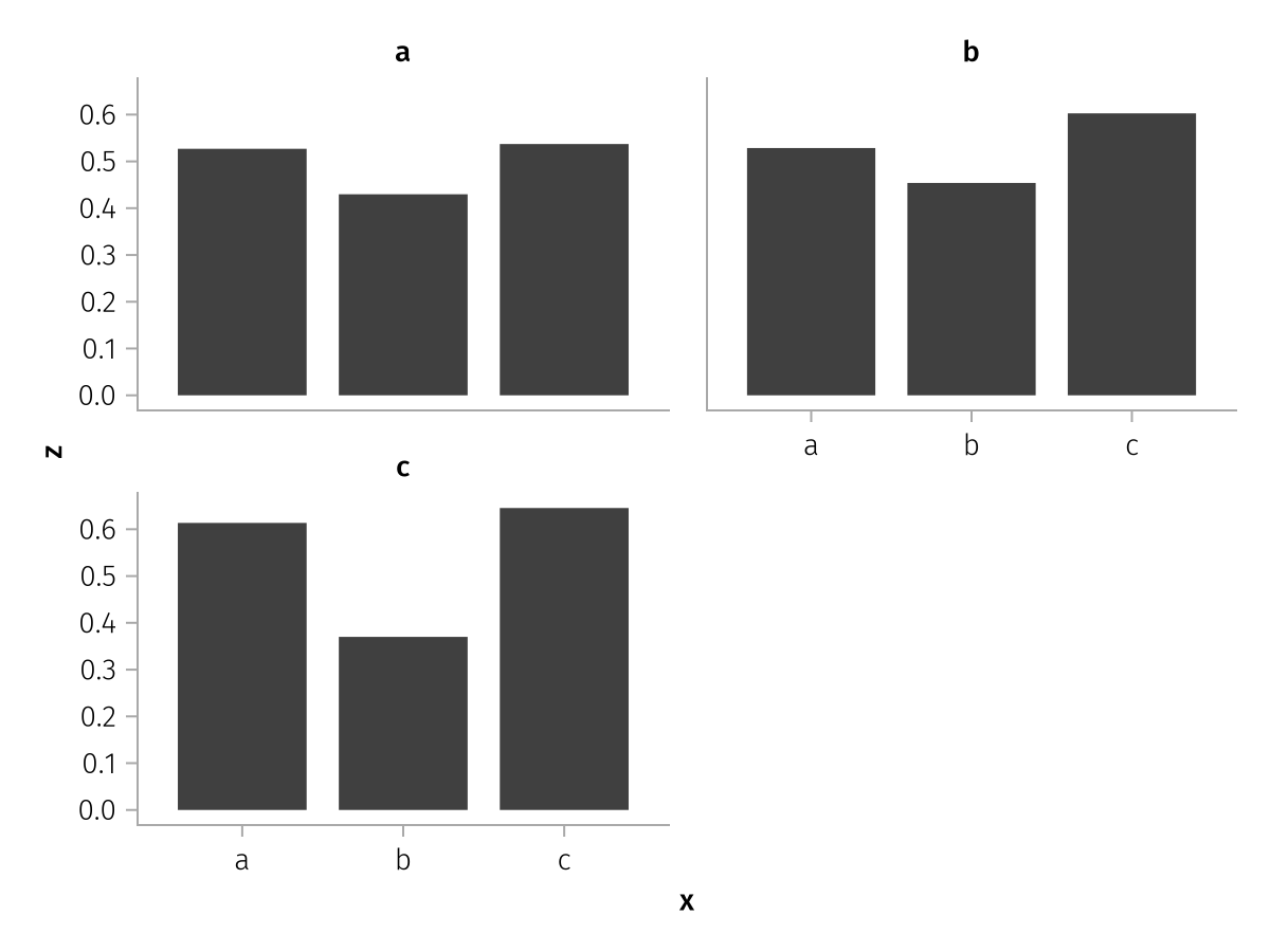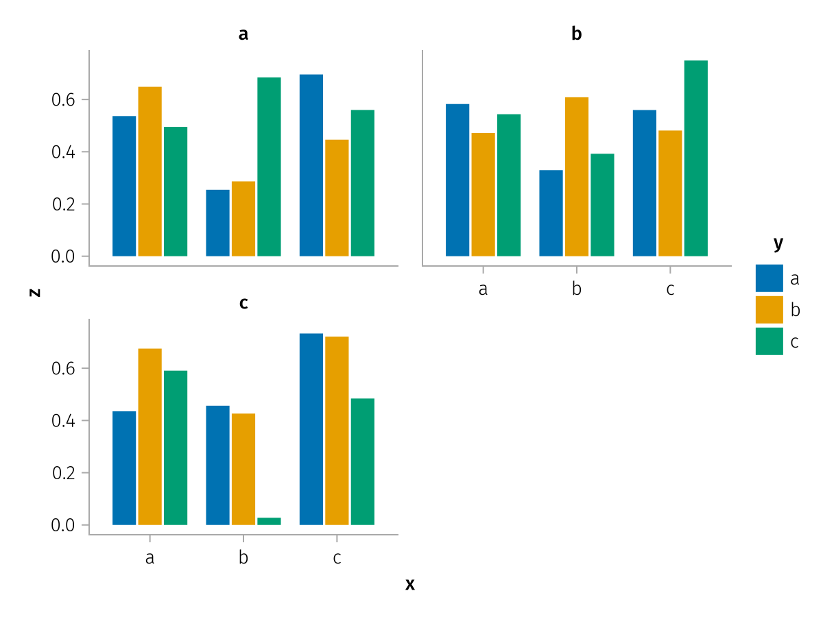 specs = data(df) * mapping(:x, :z, layout=:c, color=:y, dodge=:y) * expectation()