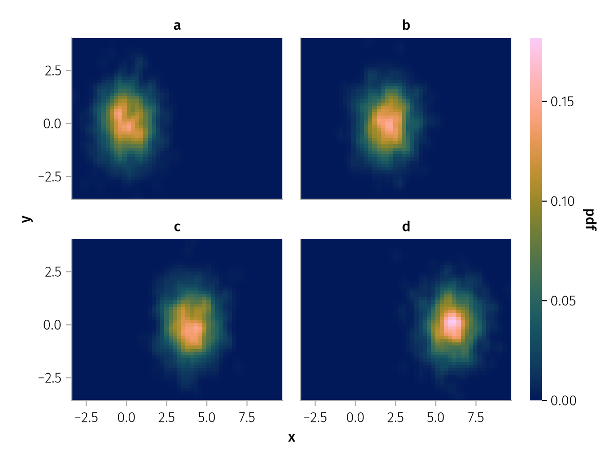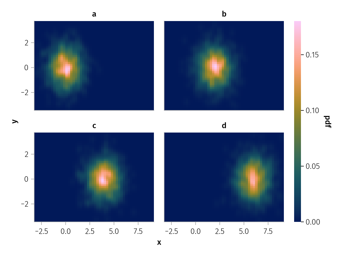 data(df) * mapping(:x, :y, layout=:z) * AlgebraOfGraphics.density(npoints=50) |> draw