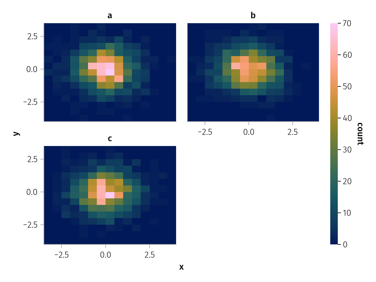 data(df) * mapping(:x, :y, layout=:z) * histogram(bins=15) |> draw