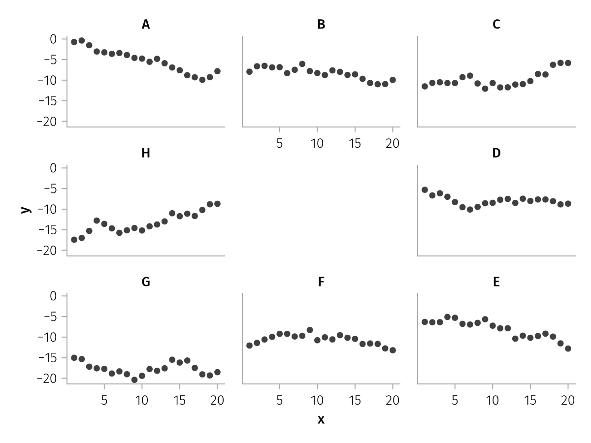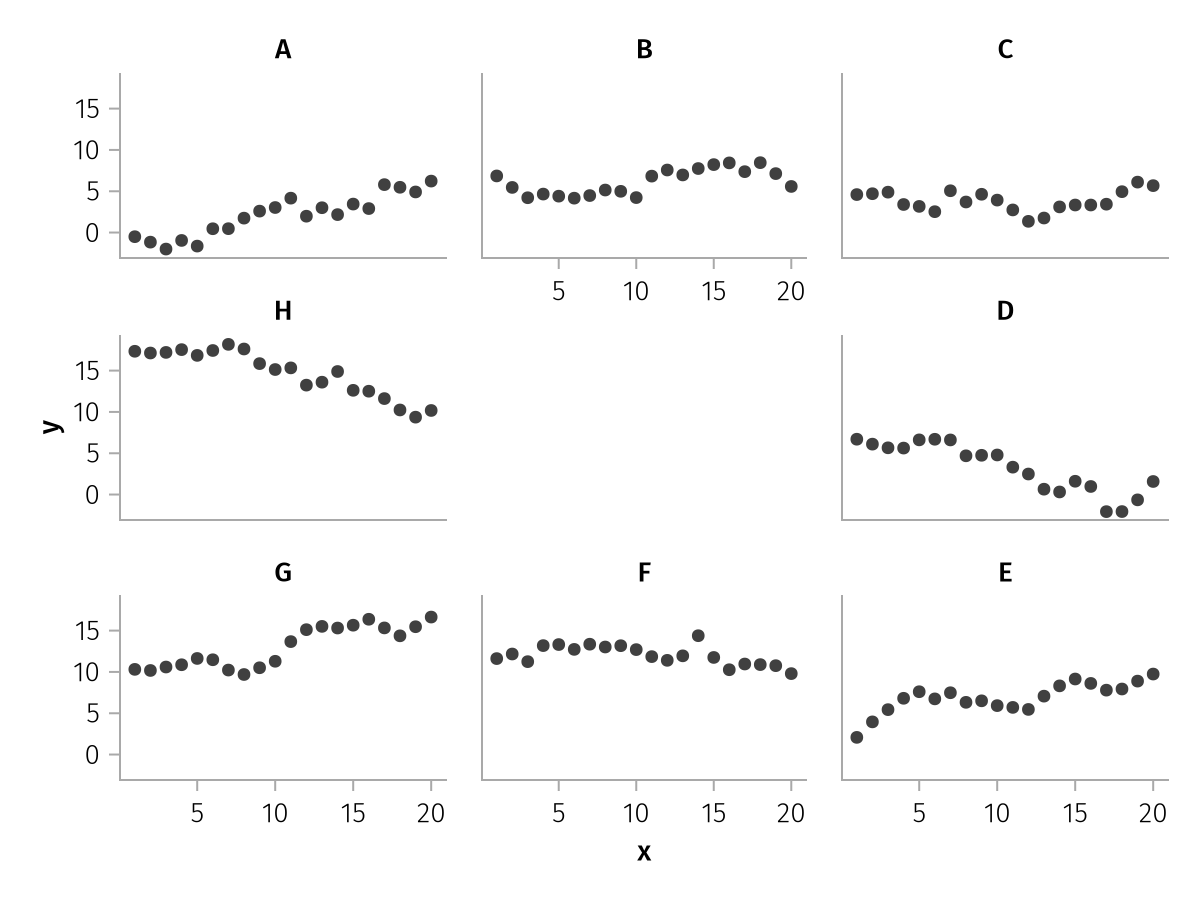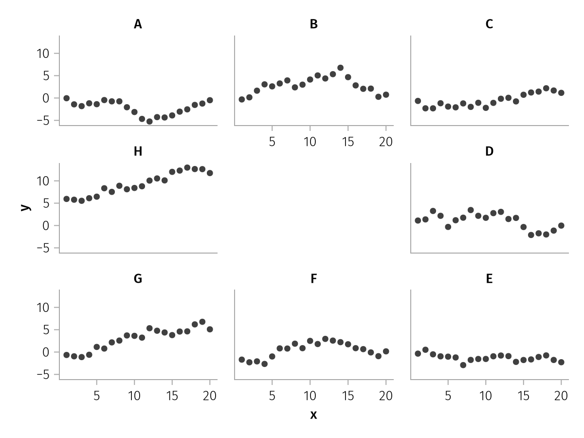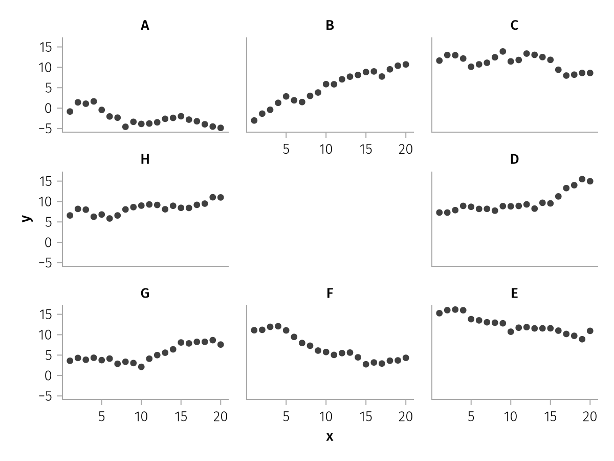 df_a = (; x = 1:9, y = [1, 2, 3, 5, 6, 7, 9, 10, 11], group = repeat(["A", "B", "C"], inner = 3))