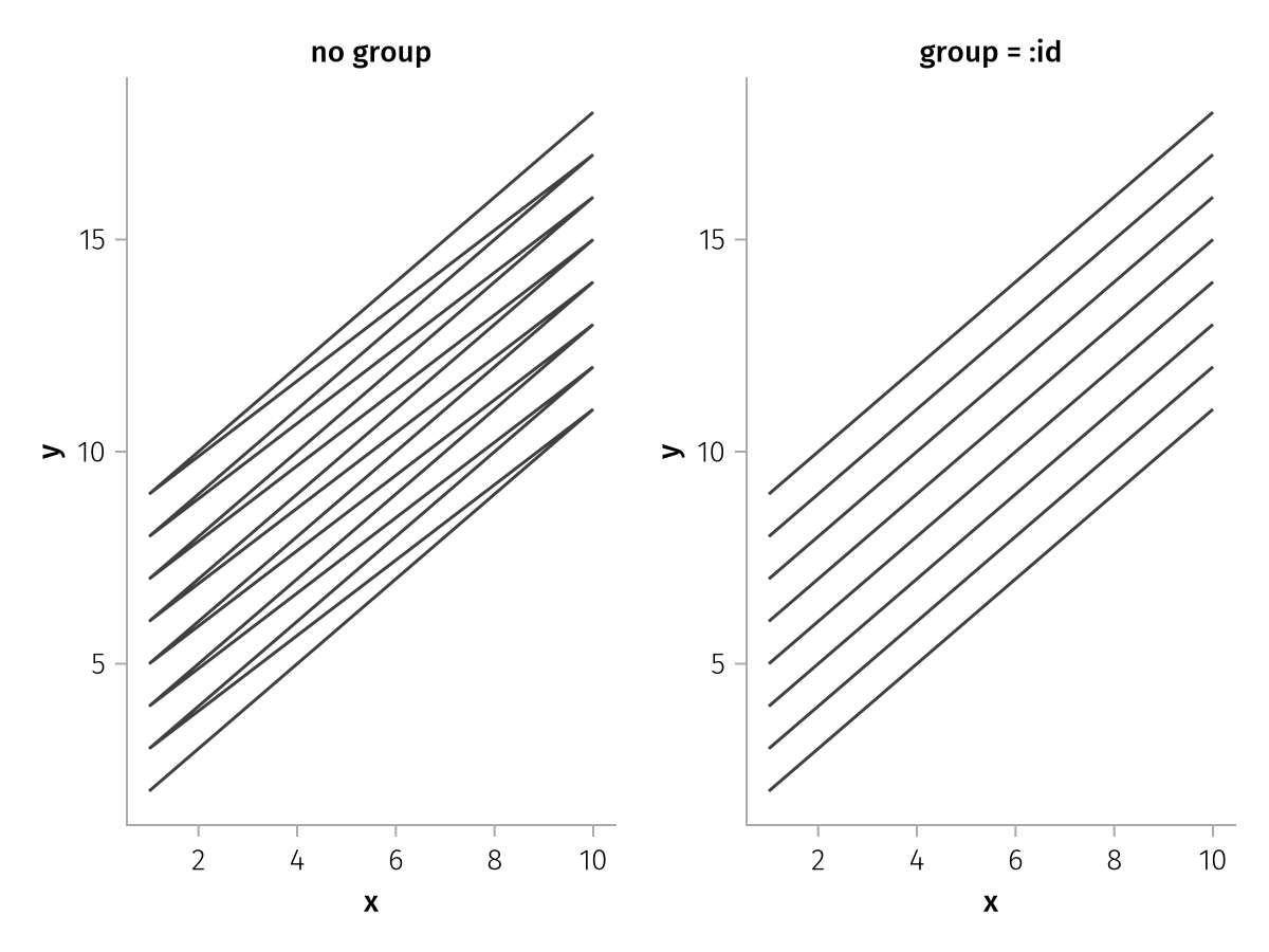 draw!(f[1, 2], spec * mapping(group = :id); axis = (; title = "group = :id"))