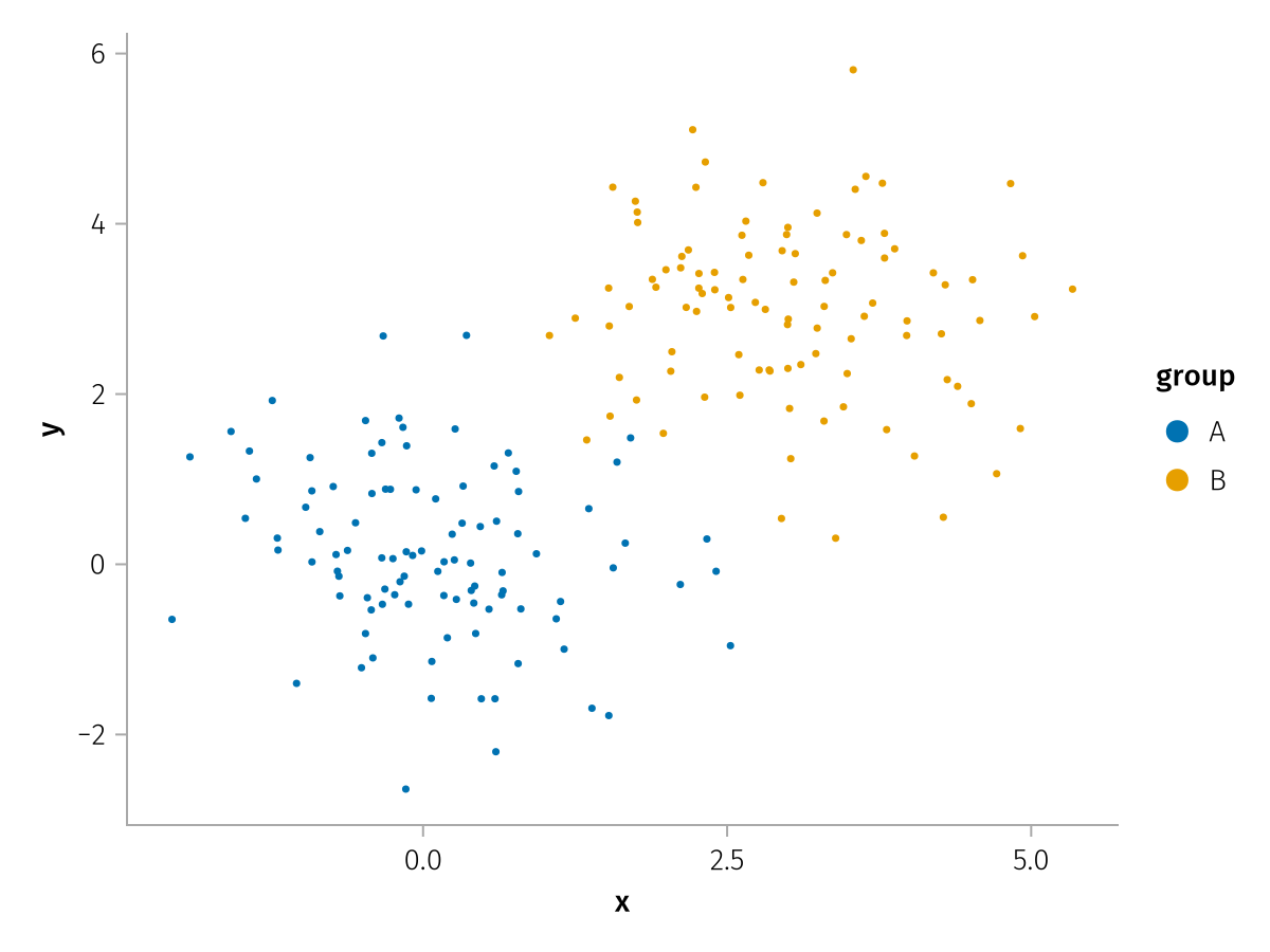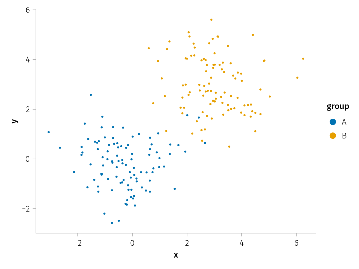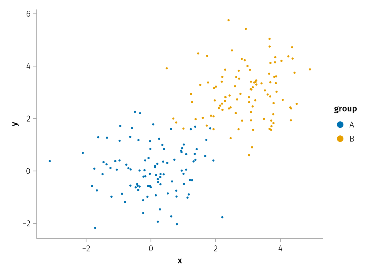 Sometimes it might be necessary to override legend element properties that are otherwise copied from the visual settings. For example, a scatter plot with many small markers might have a legend that is hard to read. We can use AlgebraOfGraphics's legend keyword in visual to specify override attributes via key-value pairs. Here we increase the markersize for the MarkerElements that are created for a Scatter plot: