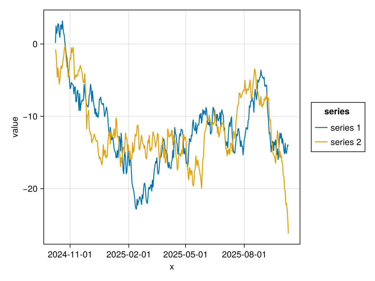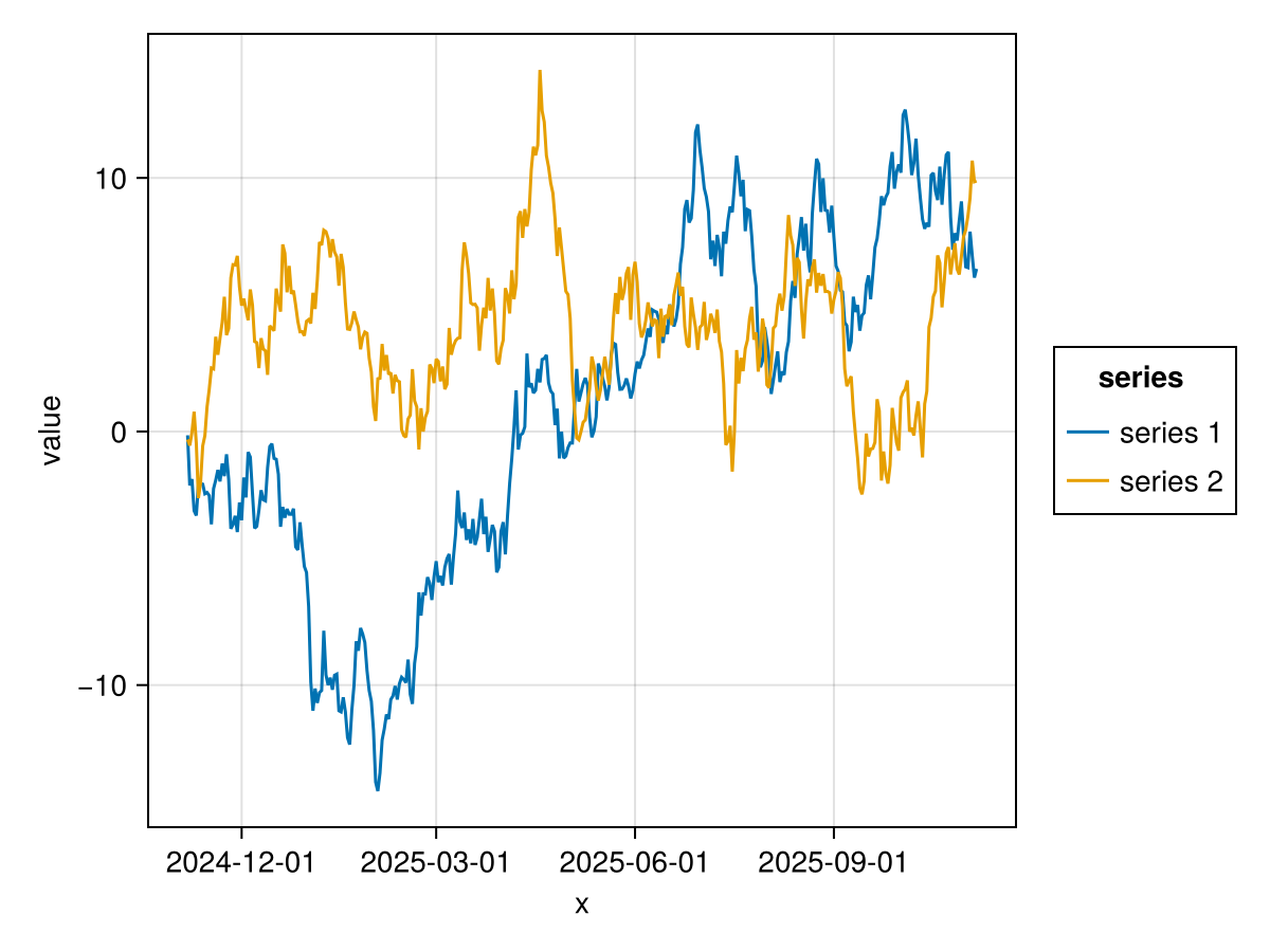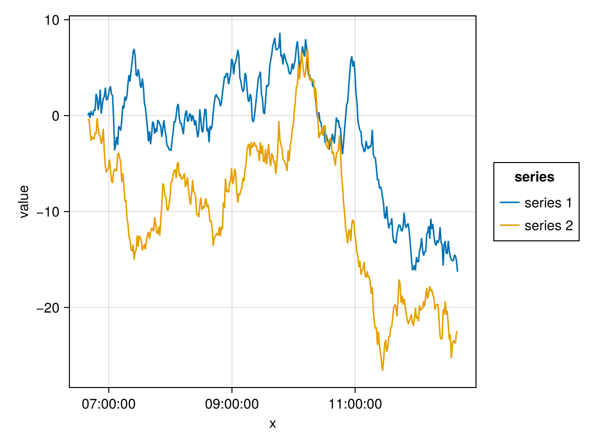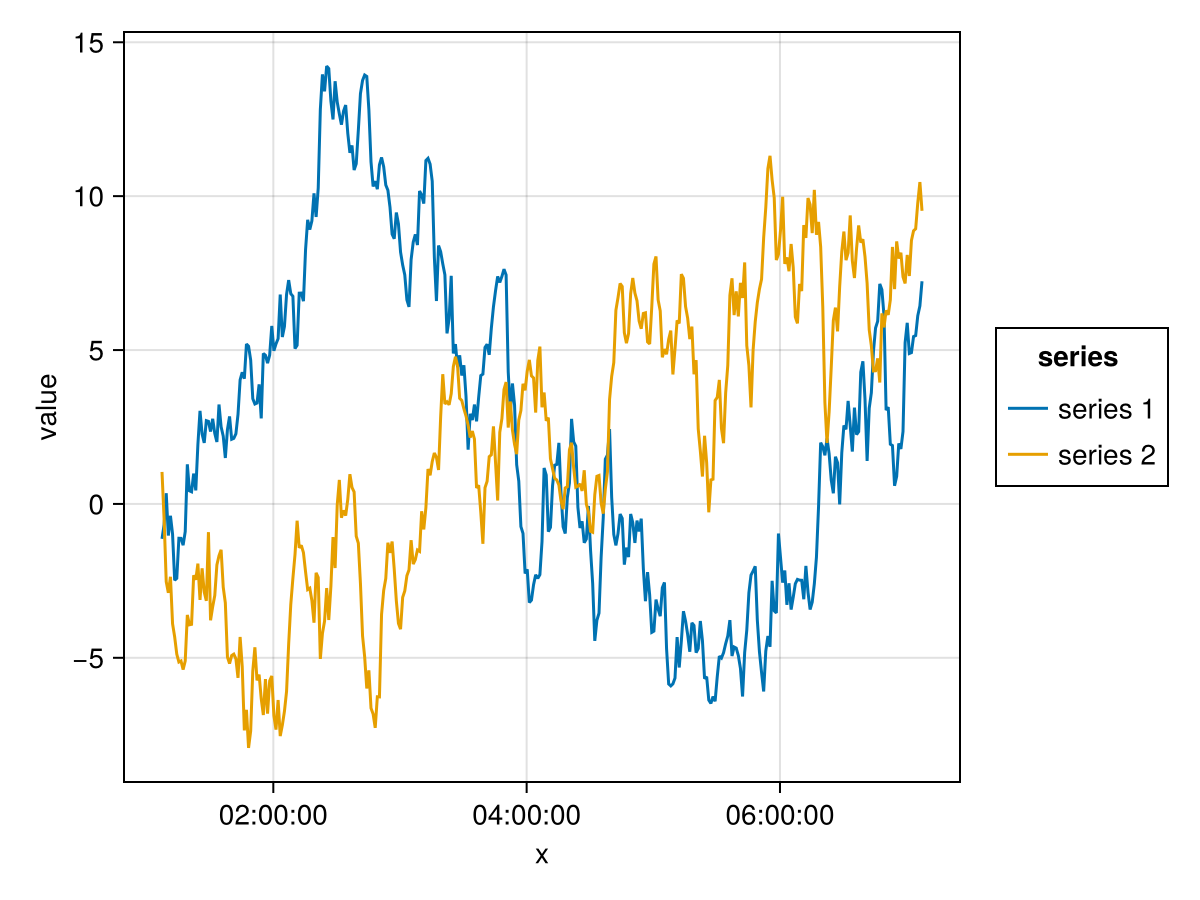 mapping(:x, [:y, :z] .=> "value", color=dims(1) => renamer(labels) =>"series ") *