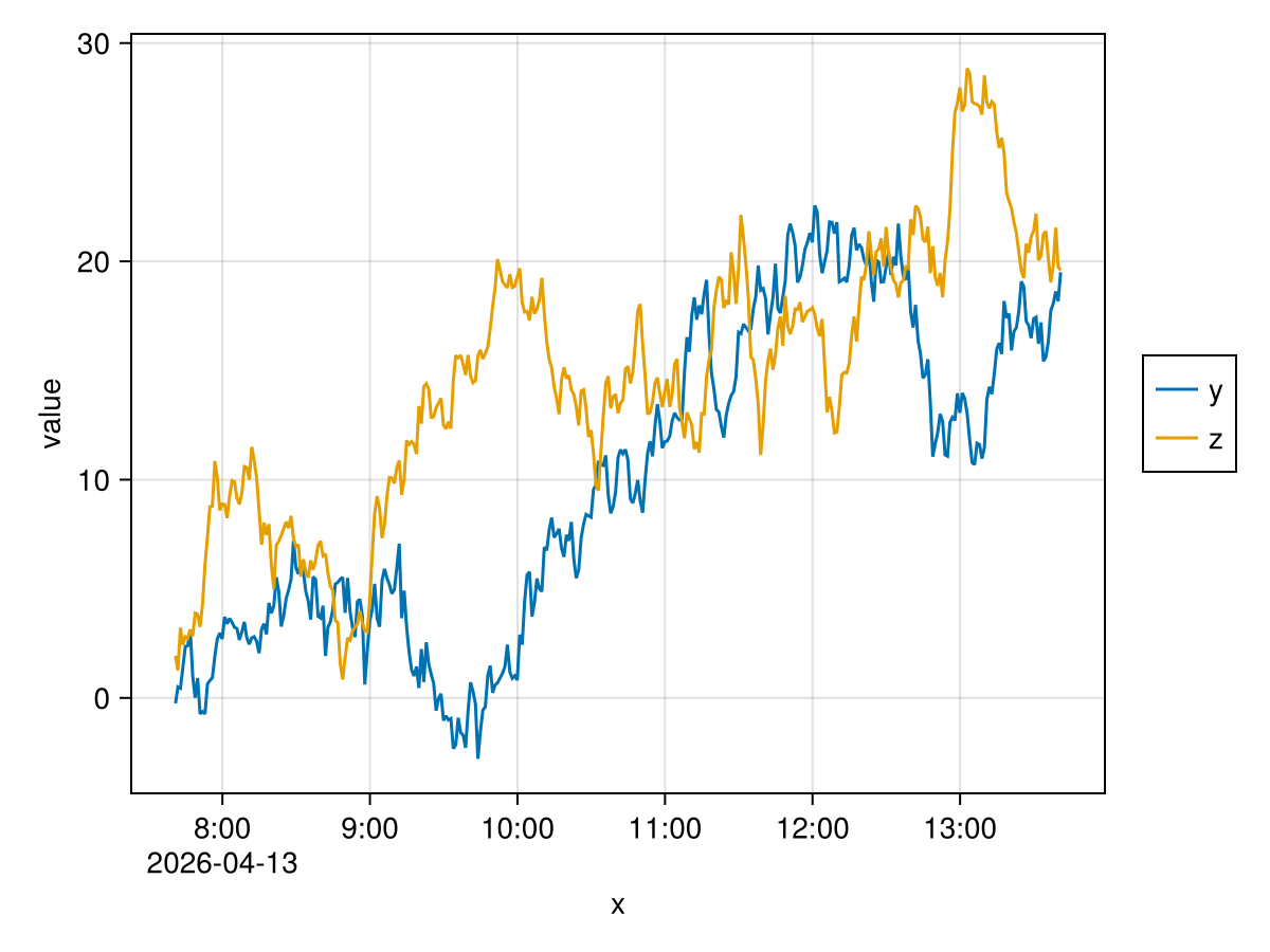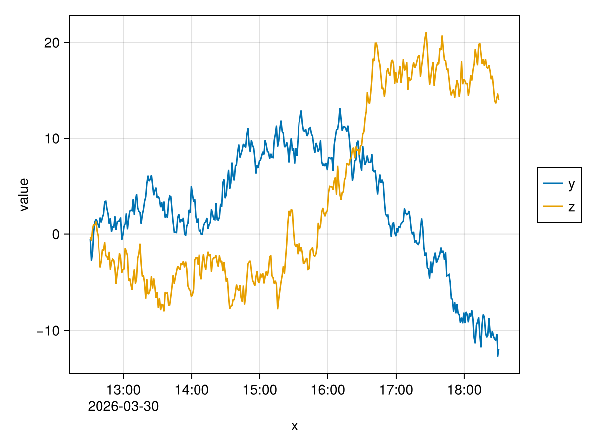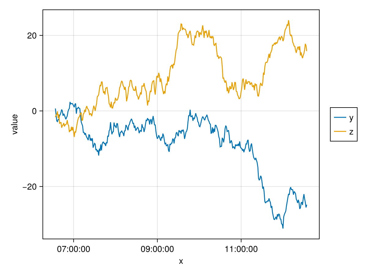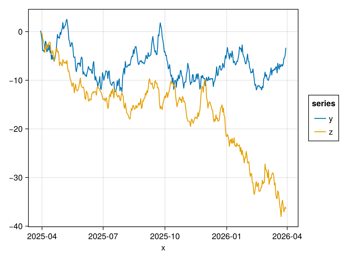 mapping(:x, [:y, :z], color=dims(1) => "series") *