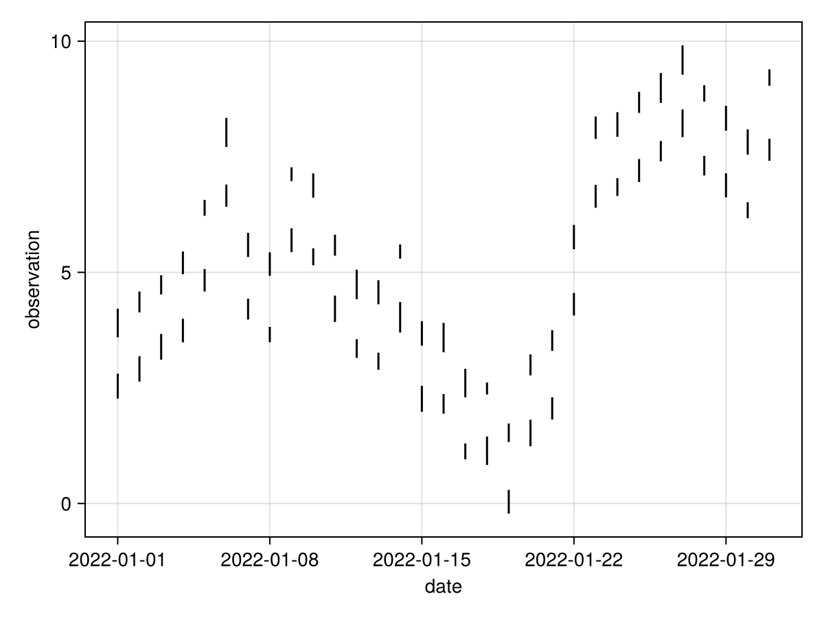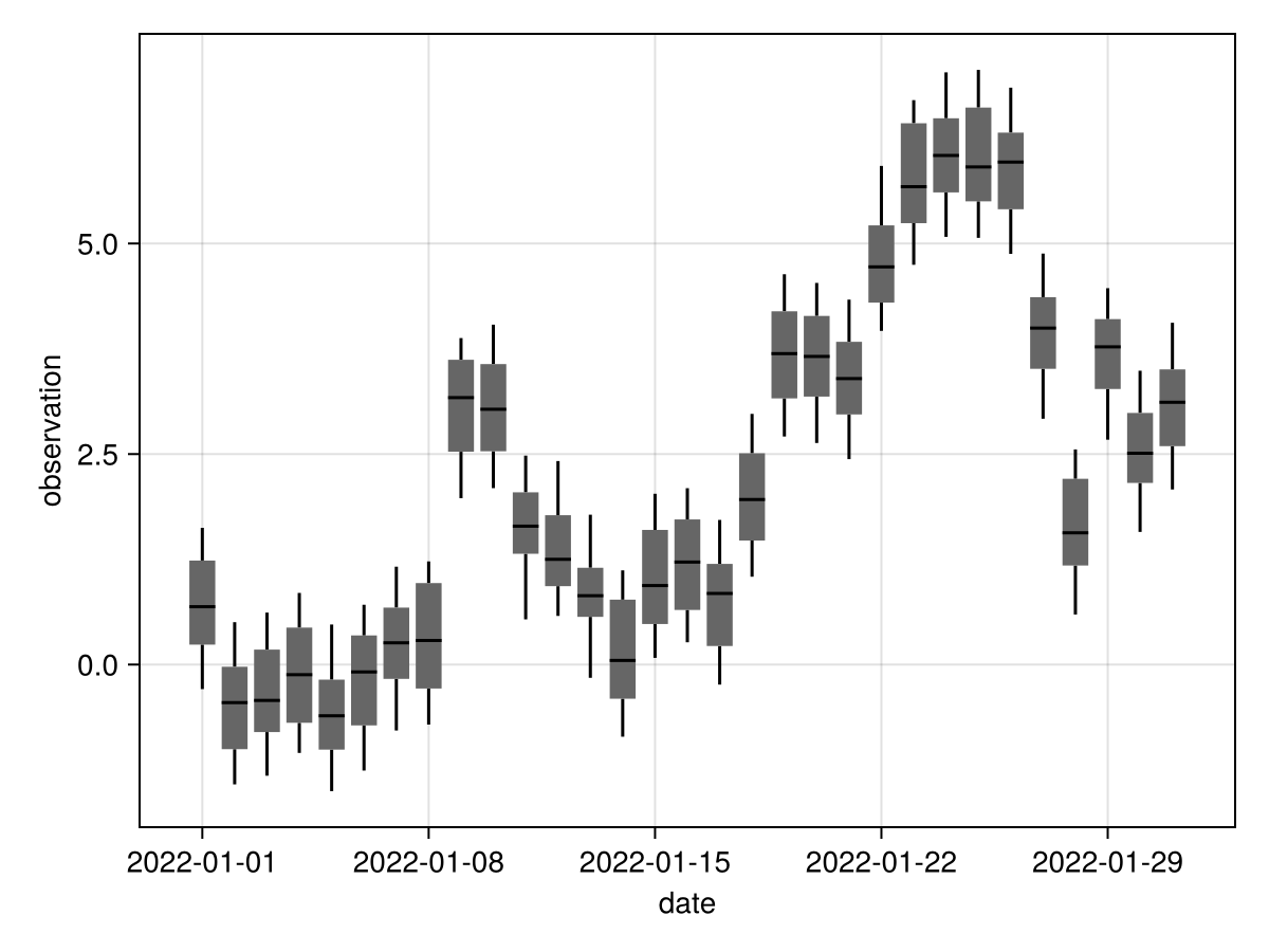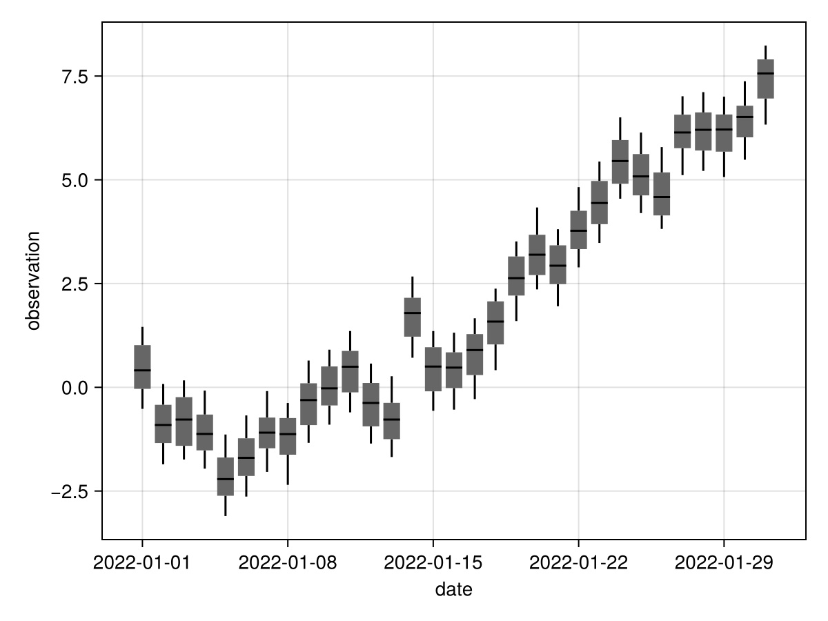 plt = data(df) * mapping(:date, :observation) * visual(BoxPlot)