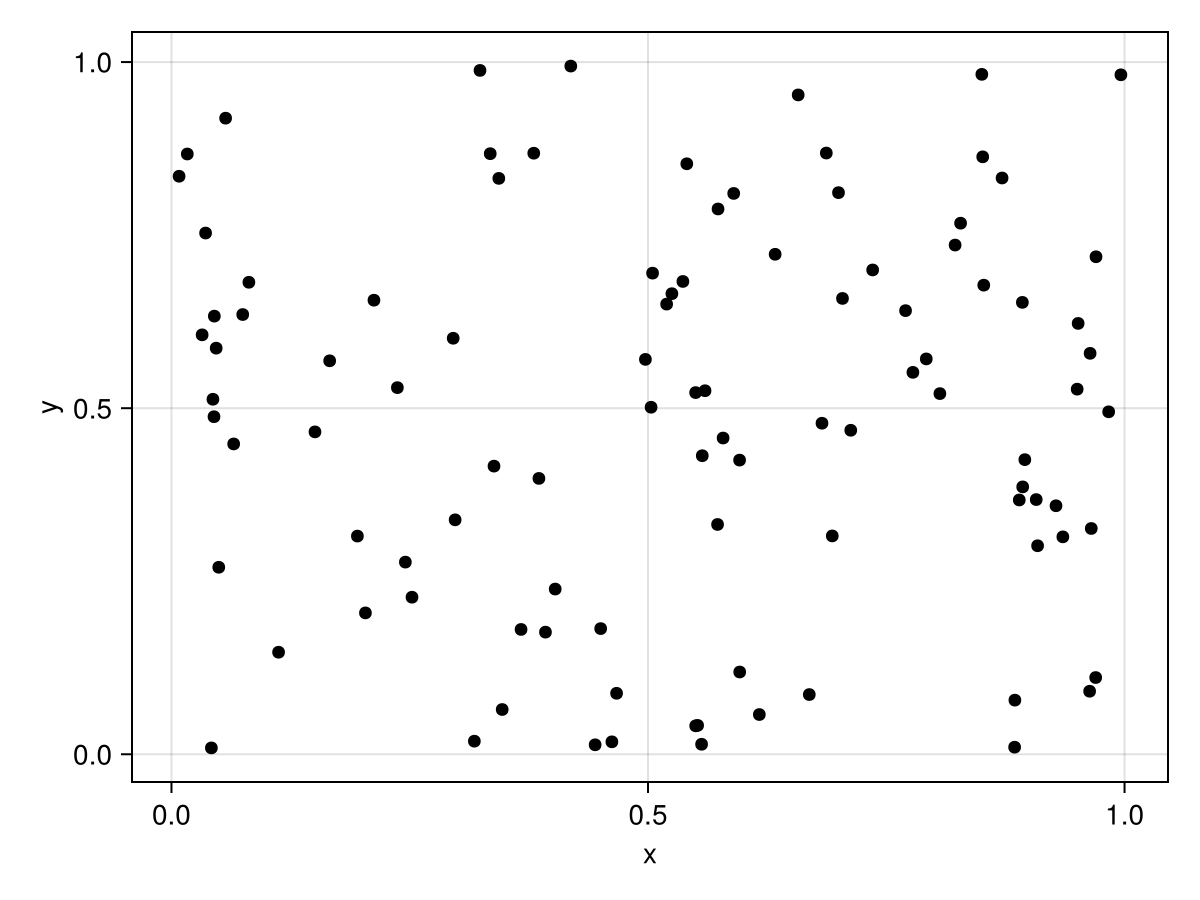 df = (x=rand(100), y=rand(100))