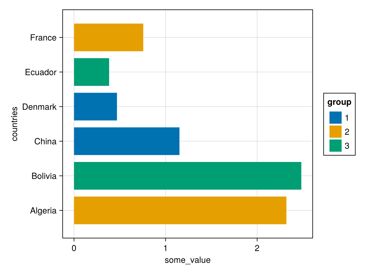 using AlgebraOfGraphics, CairoMakie, DataFramesSometimes we have datasets that have an inherent order we want to preserve. For example, this dataframe has countries sorted by some_value.
