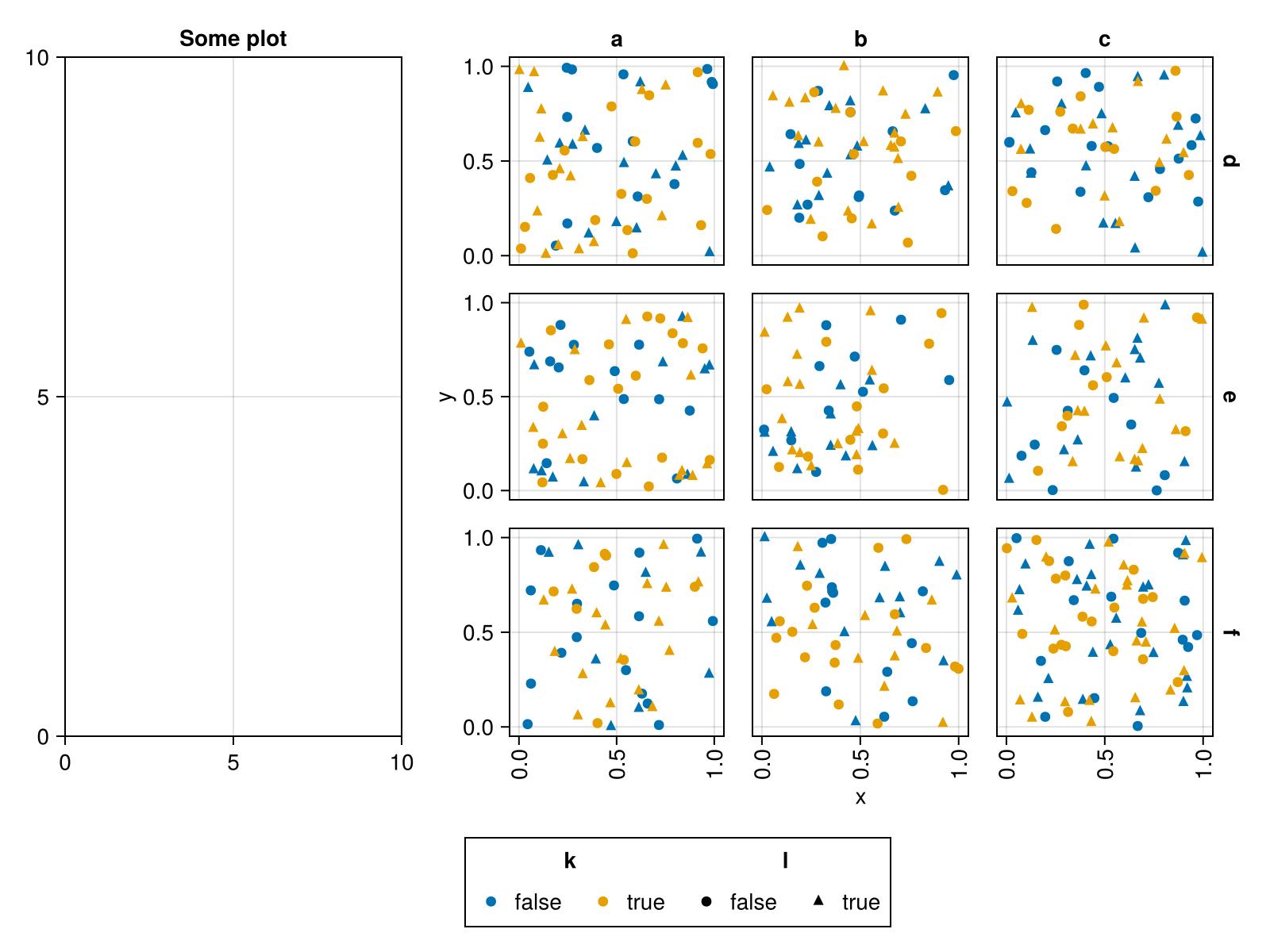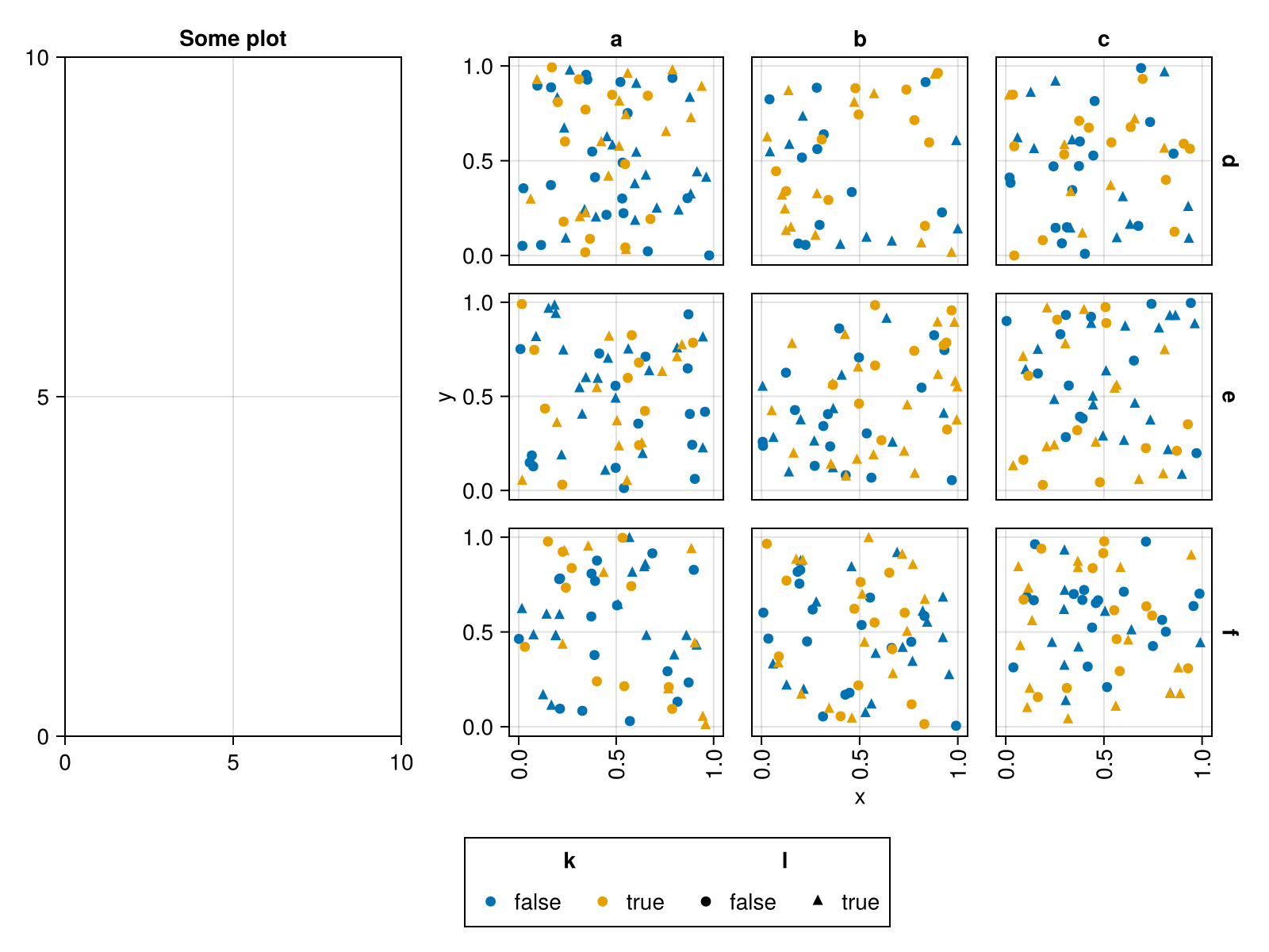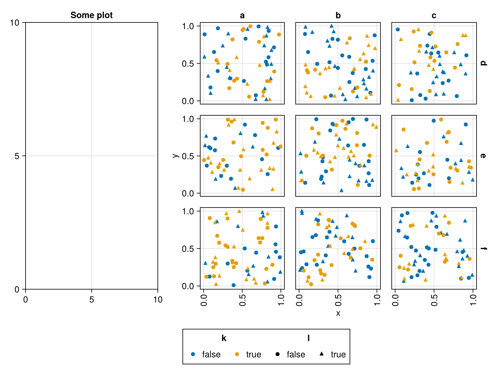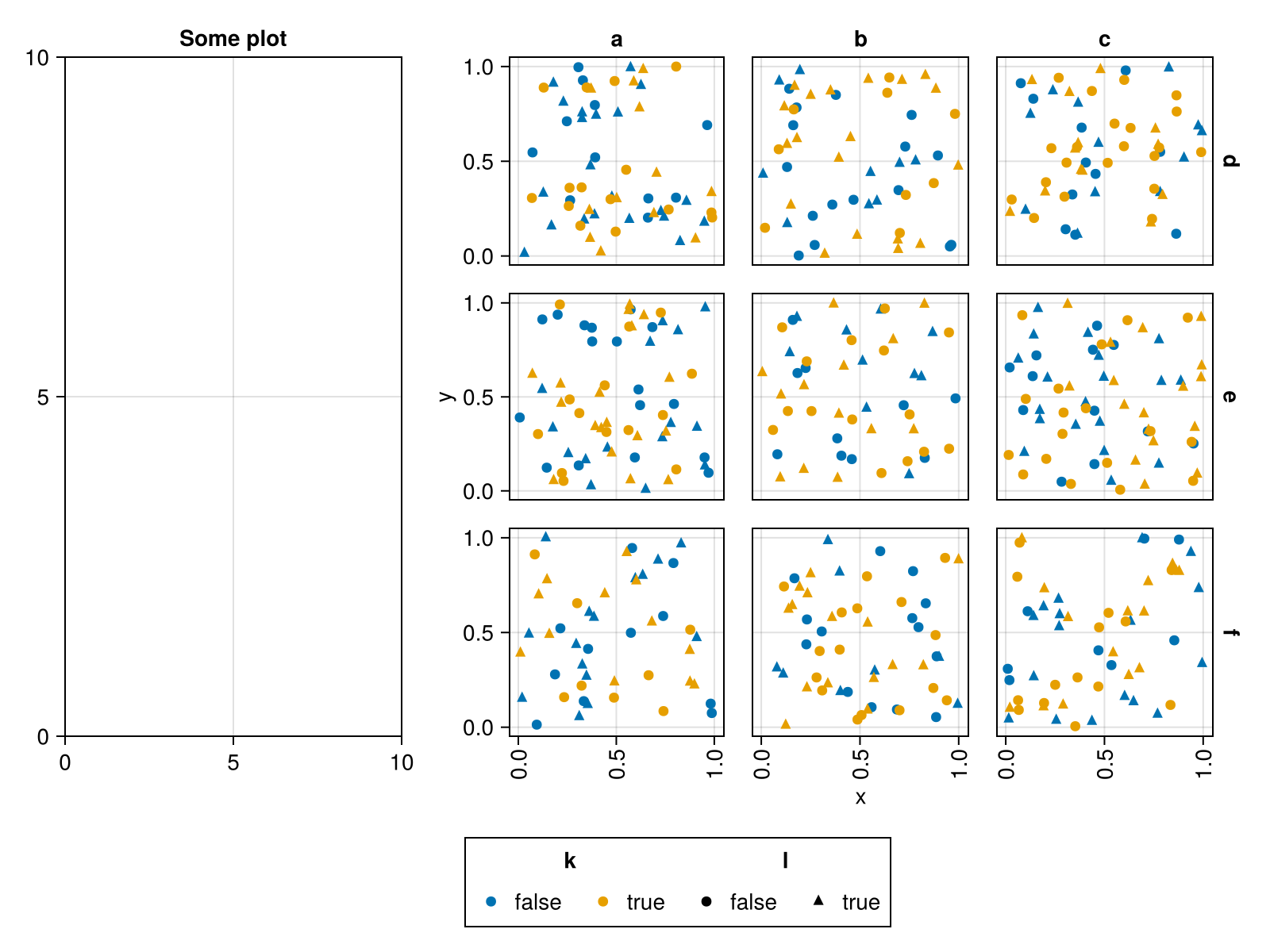 plt = data(df) * mapping(:x, :y, col=:i, row=:j, color=:k, marker=:l)