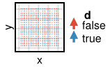 d=rand(Bool, length(x))