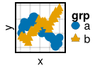 df = (; x, y, grp)