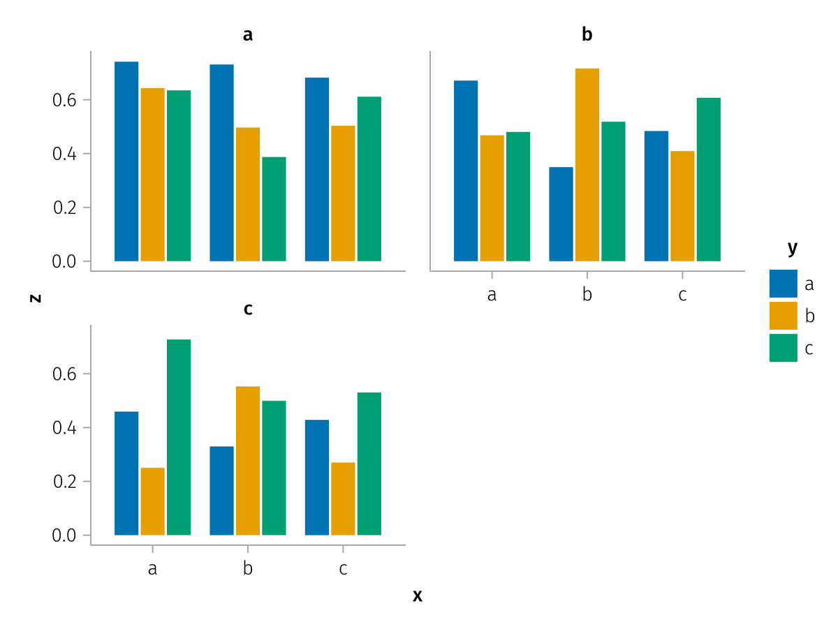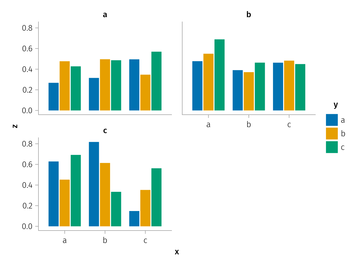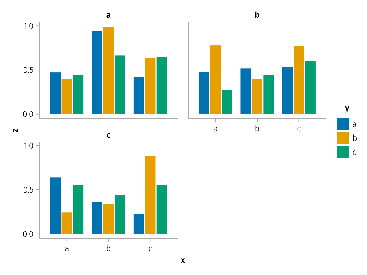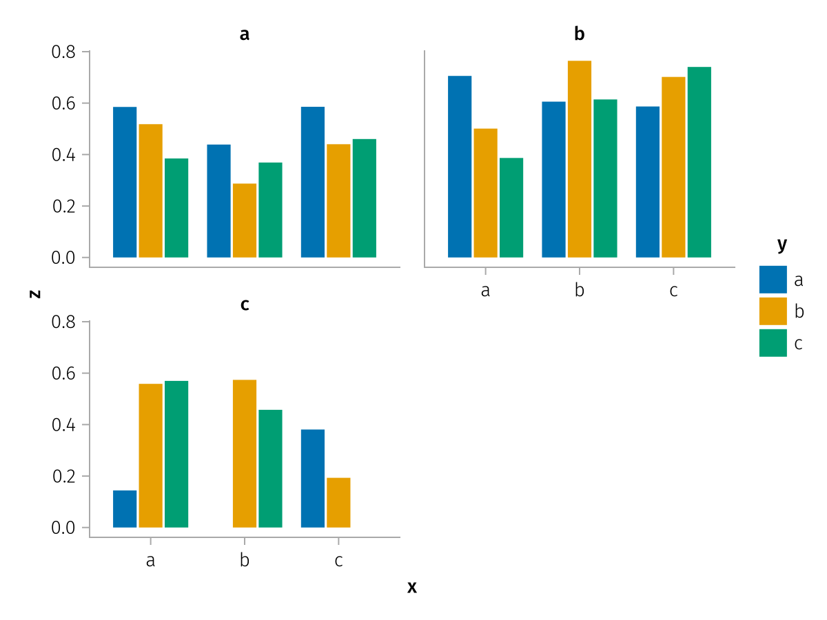 specs = data(df) * mapping(:x, :z, layout=:c, color=:y, dodge=:y) * expectation()