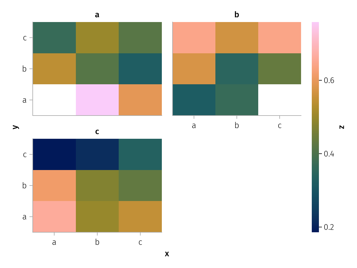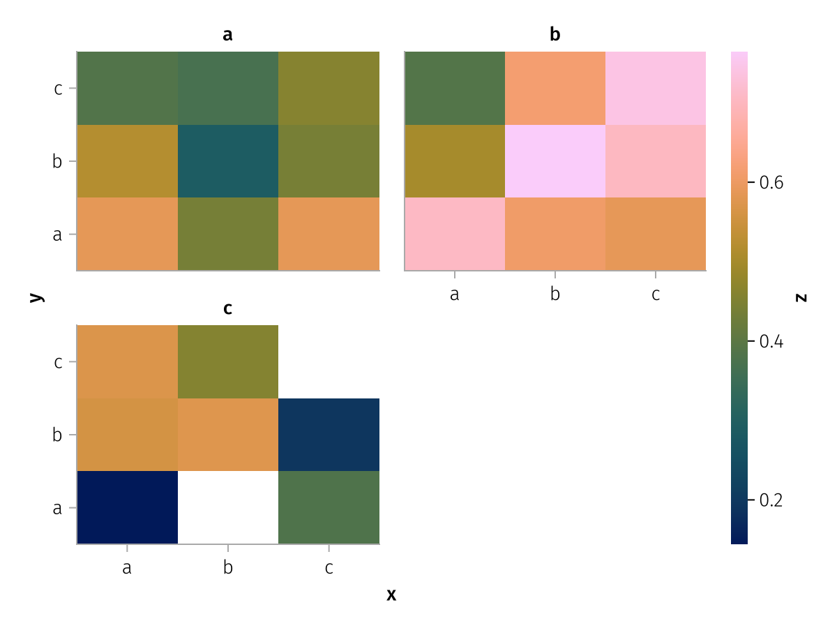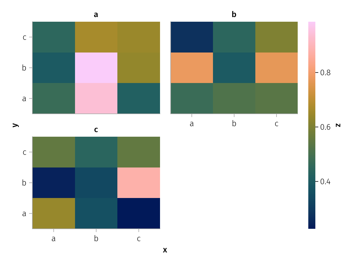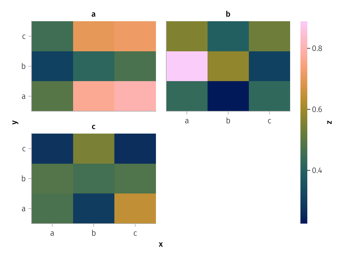 specs = data(df) * mapping(:x, :z, layout=:c, color=:y, dodge=:y) * expectation()