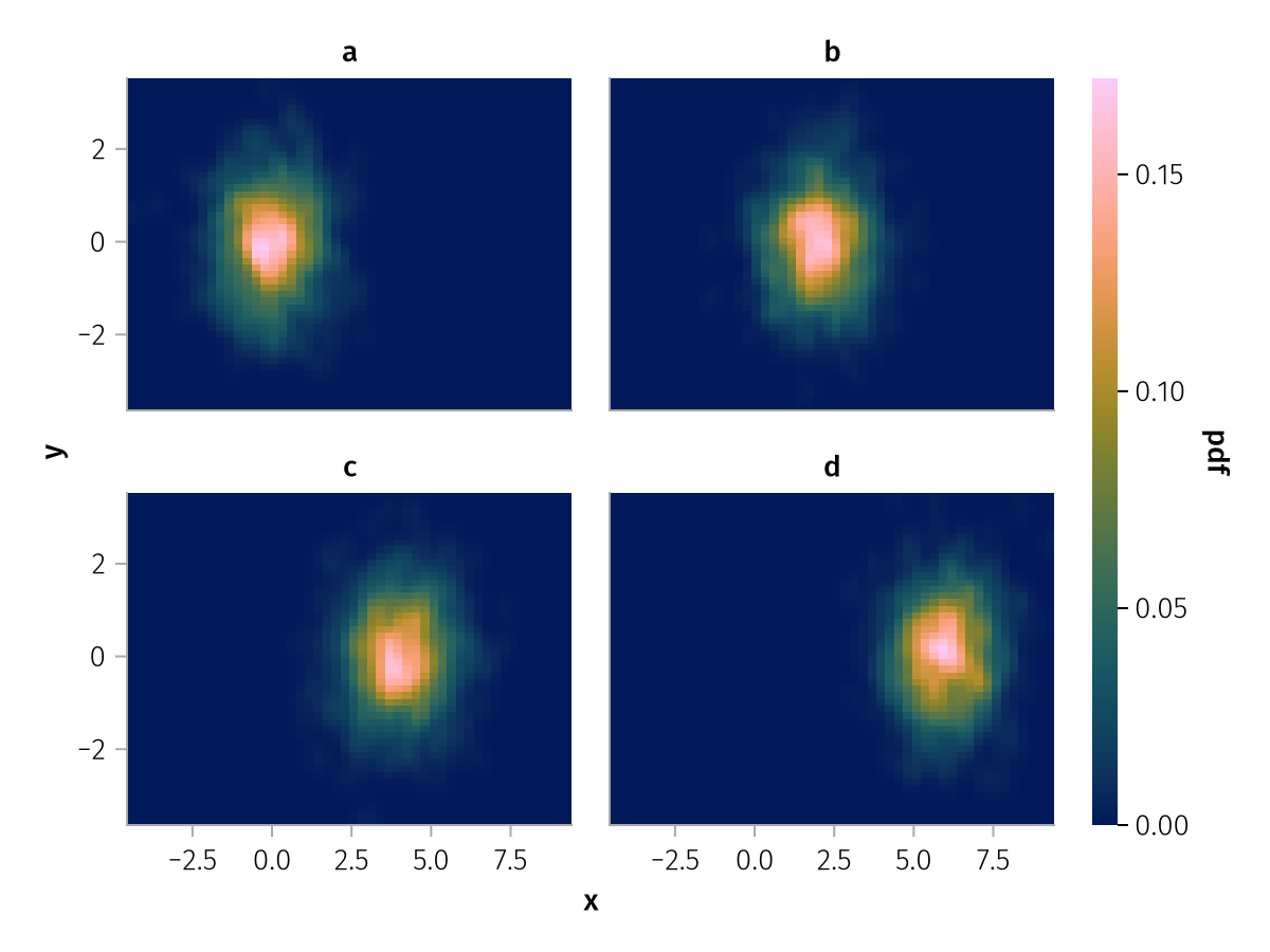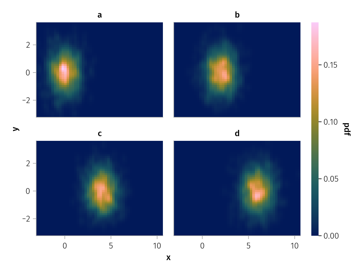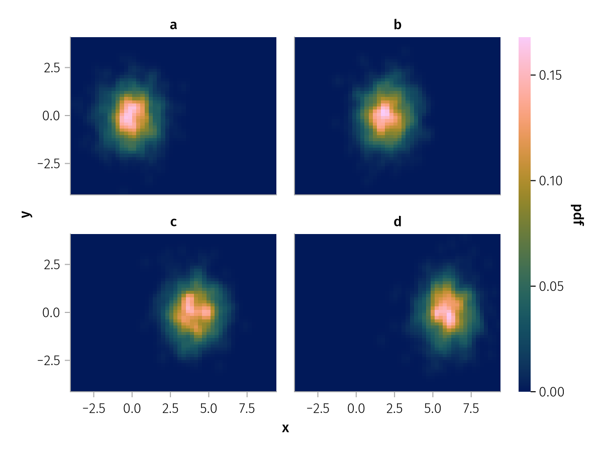 data(df) * mapping(:x, :y, layout=:z) * AlgebraOfGraphics.density(npoints=50) |> draw
