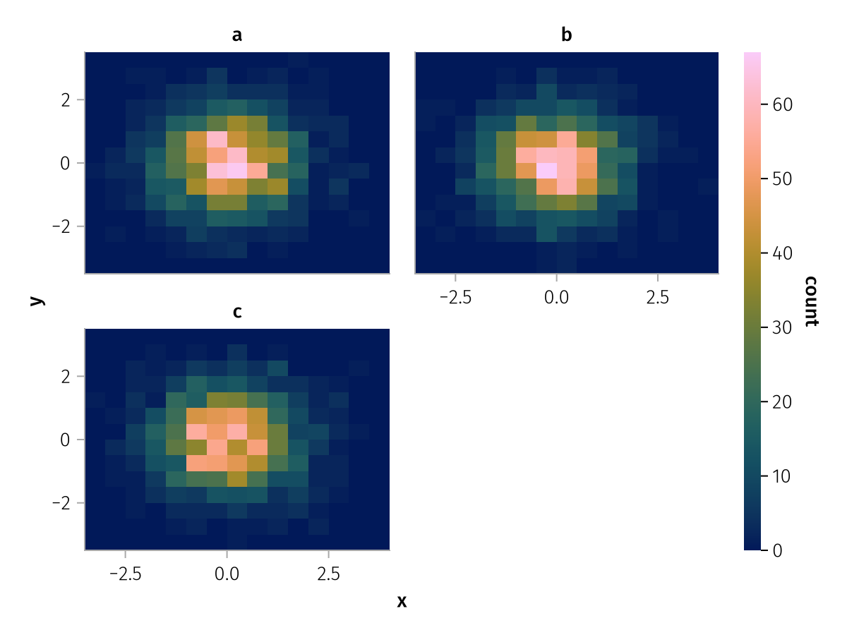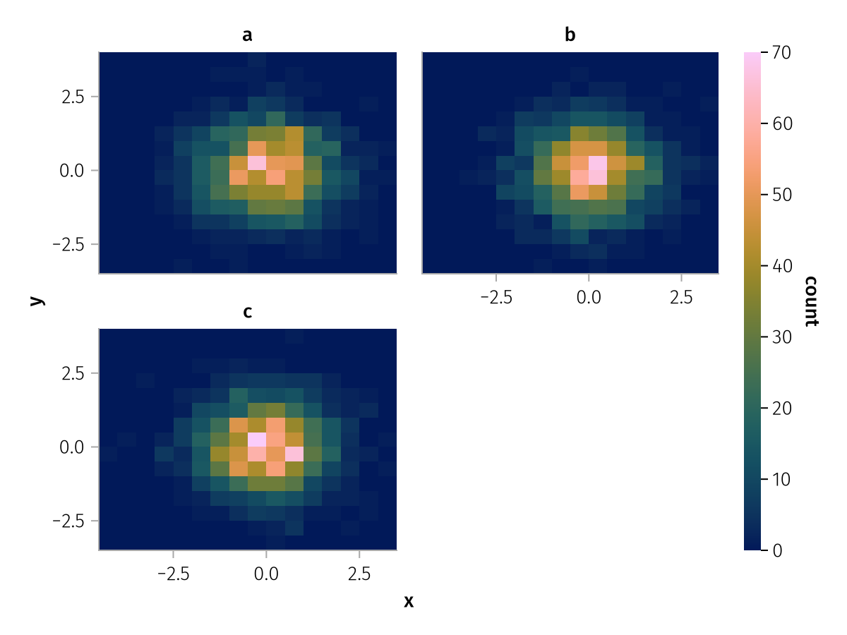 data(df) * mapping(:x, :y, layout=:z) * histogram(bins=15) |> draw
