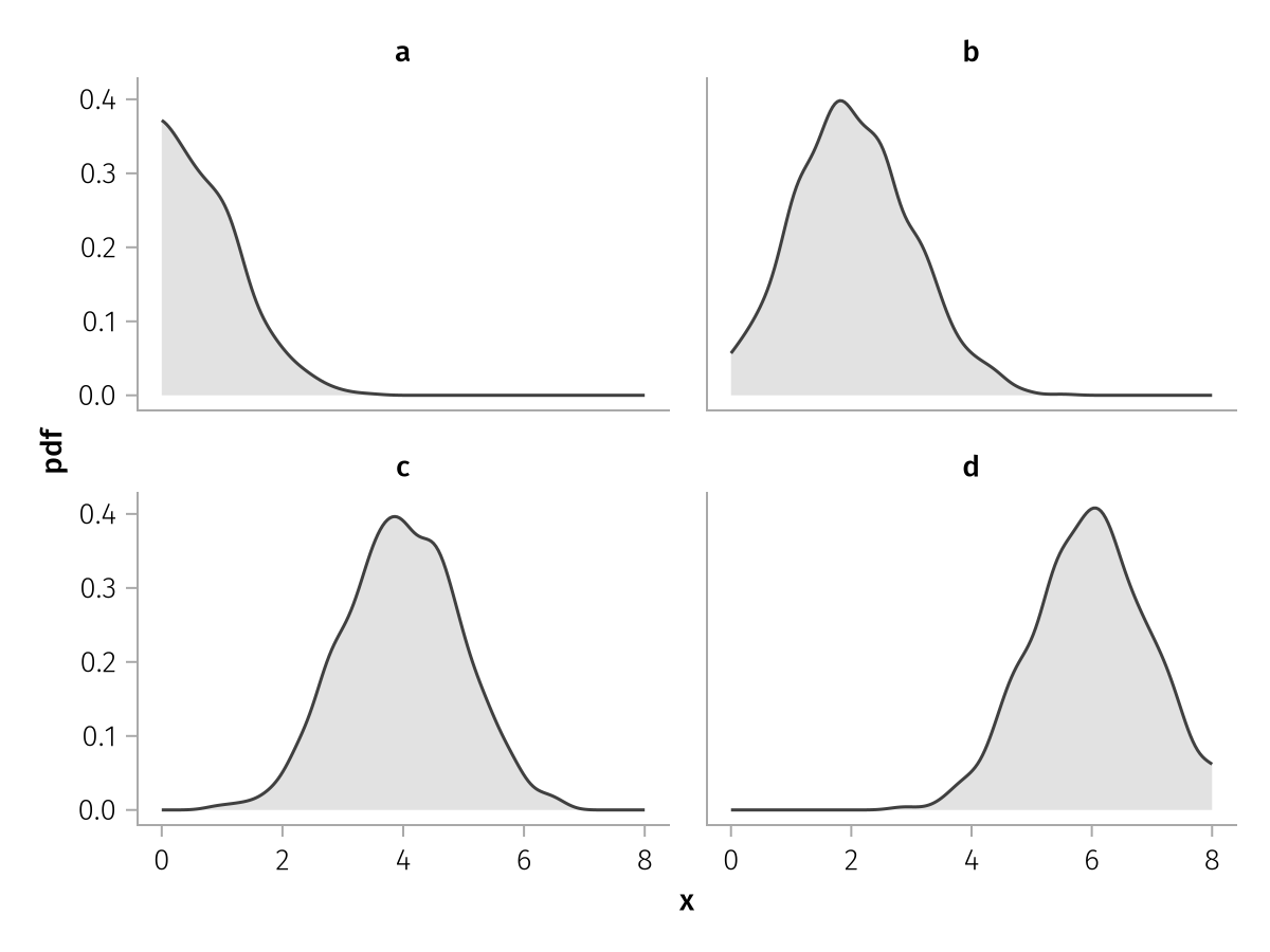 data(df) * mapping(:x, layout=:z) * AlgebraOfGraphics.density(datalimits = (0, 8)) |> draw