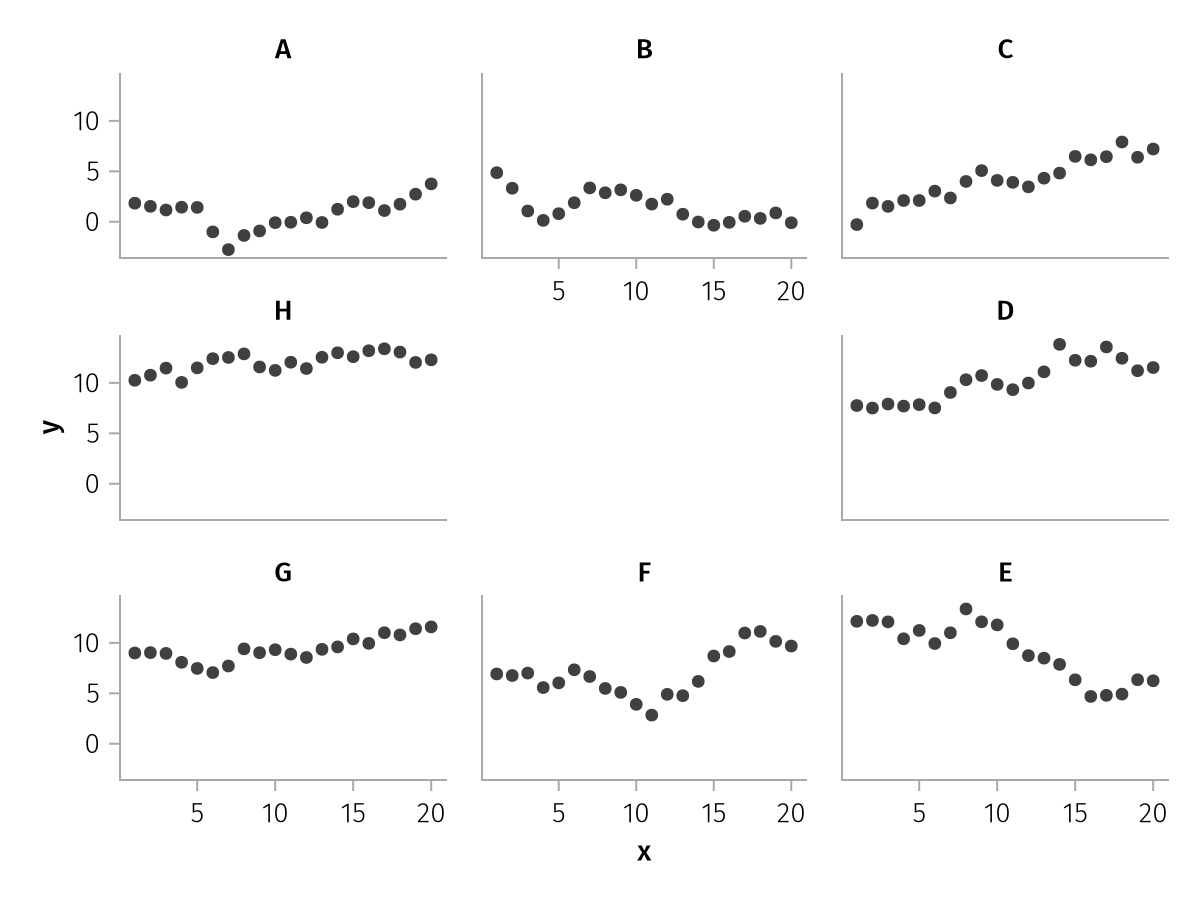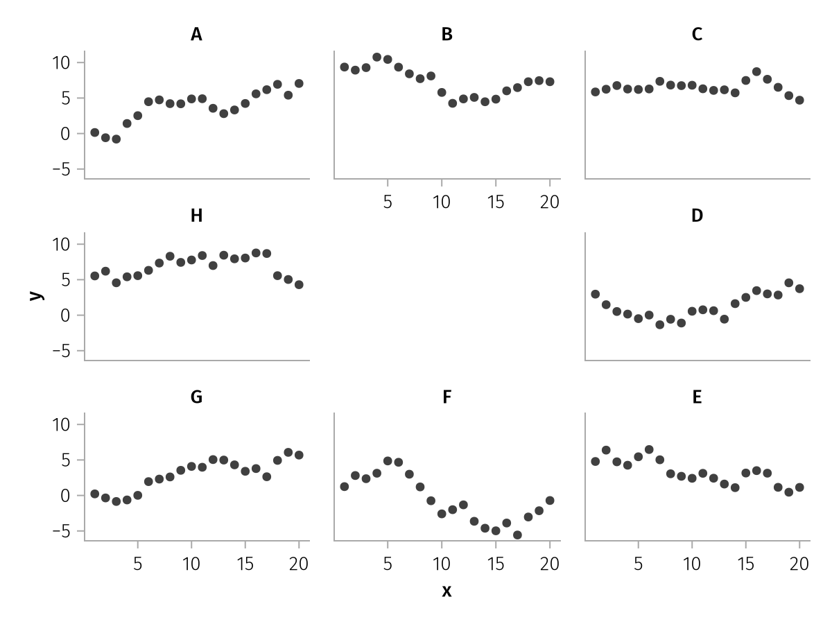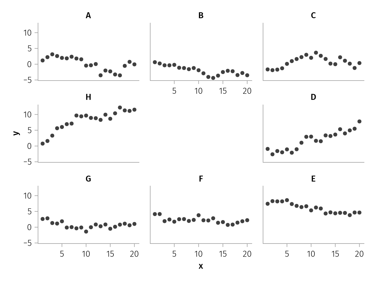 df_a = (; x = 1:9, y = [1, 2, 3, 5, 6, 7, 9, 10, 11], group = repeat(["A", "B", "C"], inner = 3))