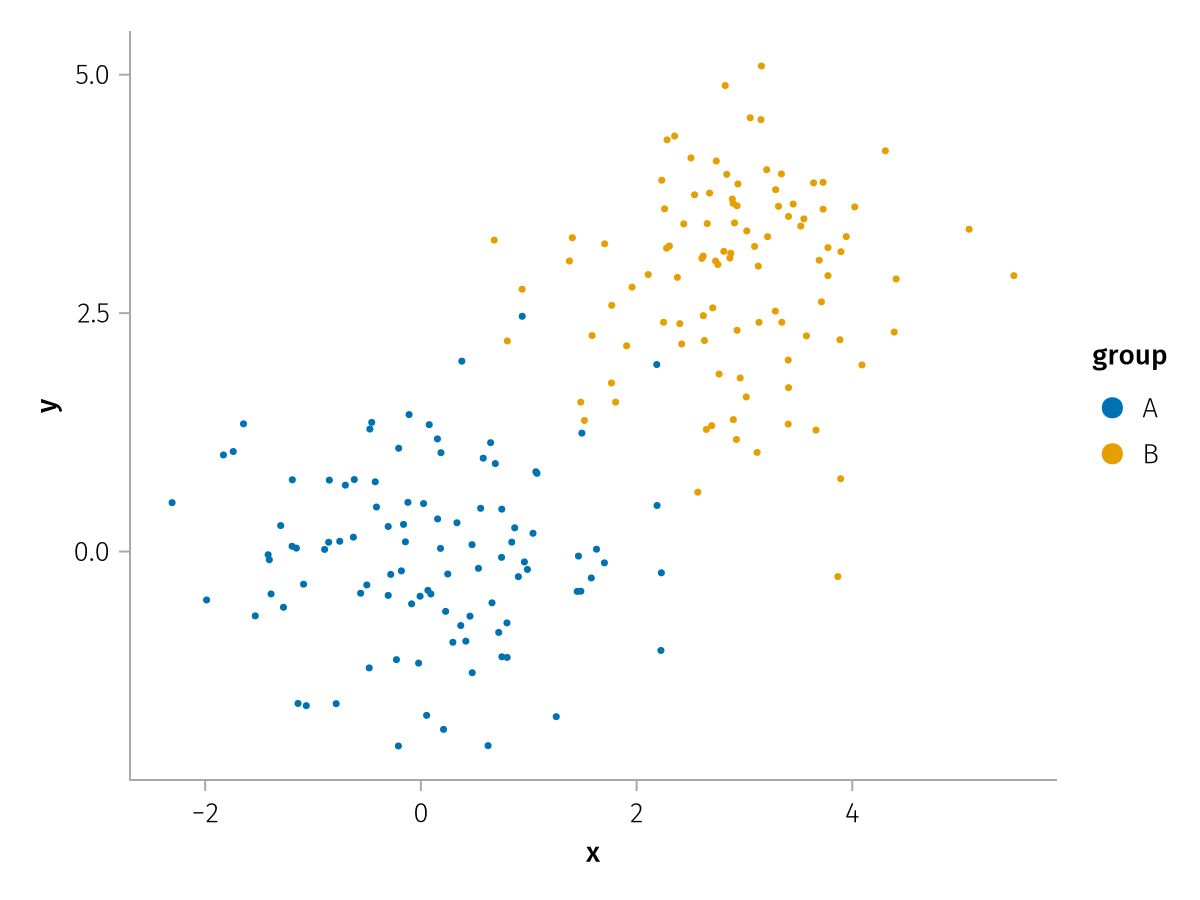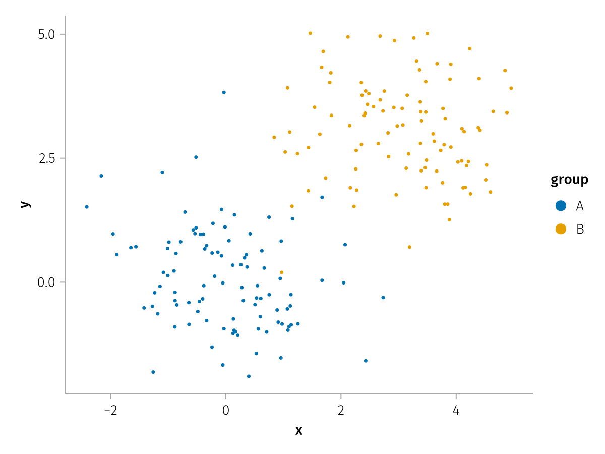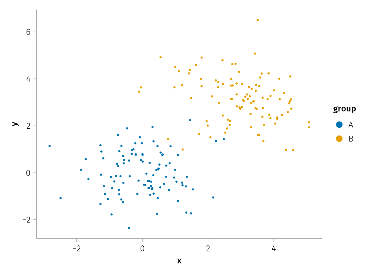 Sometimes it might be necessary to override legend element properties that are otherwise copied from the visual settings. For example, a scatter plot with many small markers might have a legend that is hard to read. We can use AlgebraOfGraphics's legend keyword in visual to specify override attributes via key-value pairs. Here we increase the markersize for the MarkerElements that are created for a Scatter plot: