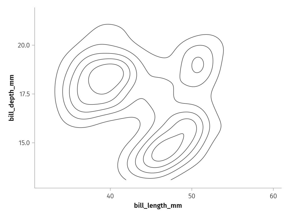 density_layer = data(penguins) * mapping(:bill_length_mm, :bill_depth_mm) * AlgebraOfGraphics.density()