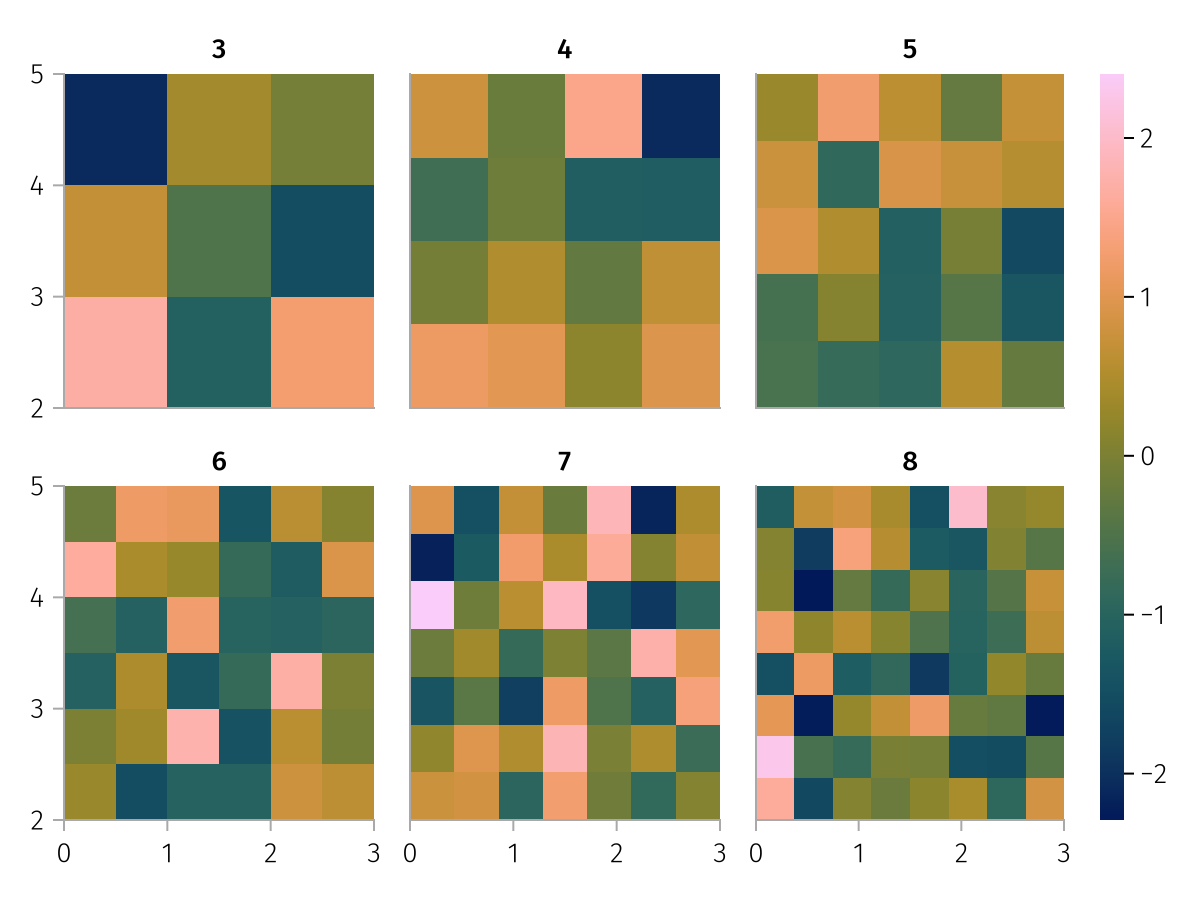 The order of seasons is correct in this version, however each y axis has its own label now (corresponding to the source columns) and all y axes are unlinked. That is because AlgebraOfGraphics has the ability to extract labels across multiple input dimensions and it will not merge axes that are labeled differently. The input shape in our case is (4,) which is equivalent to the size of our four-column vectors. So there are four labels.