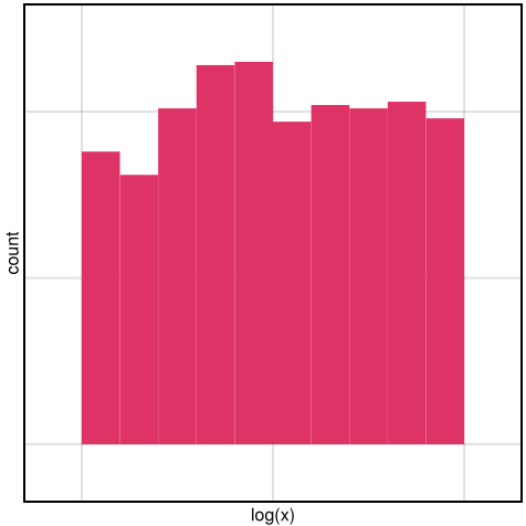 draw(hist1, axis=(width=225, height=225, xscale=log))df = (x = exp.(rand(1000)),)