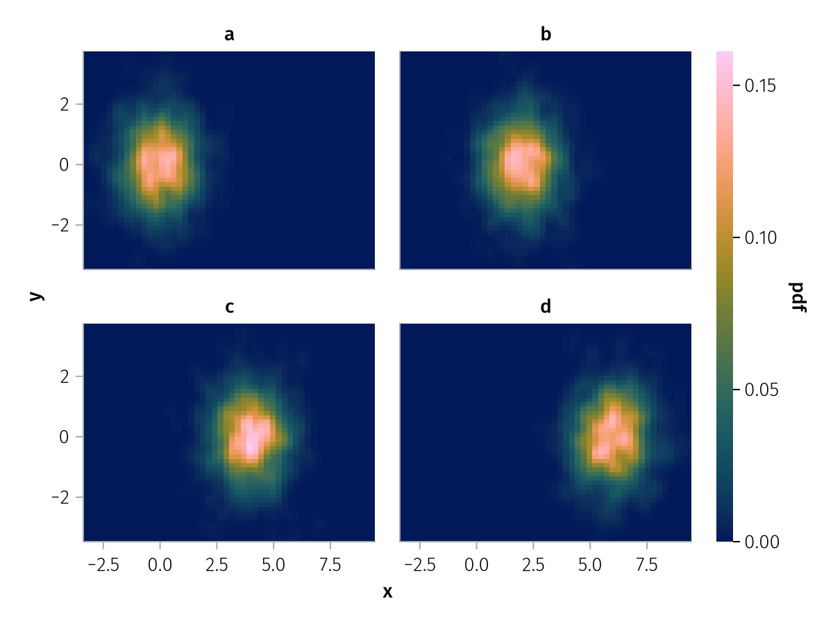 data(df) * mapping(:x, :y, layout=:z) * AlgebraOfGraphics.density(npoints=50) |> draw
