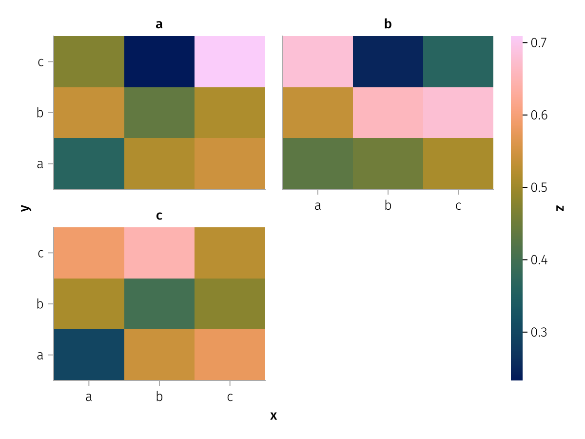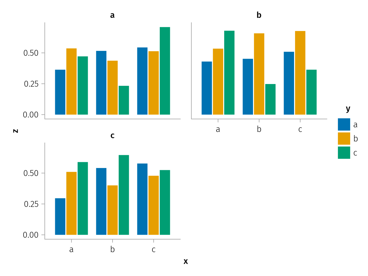 specs = data(df) * mapping(:x, :z, layout=:c, color=:y, dodge=:y) * expectation()