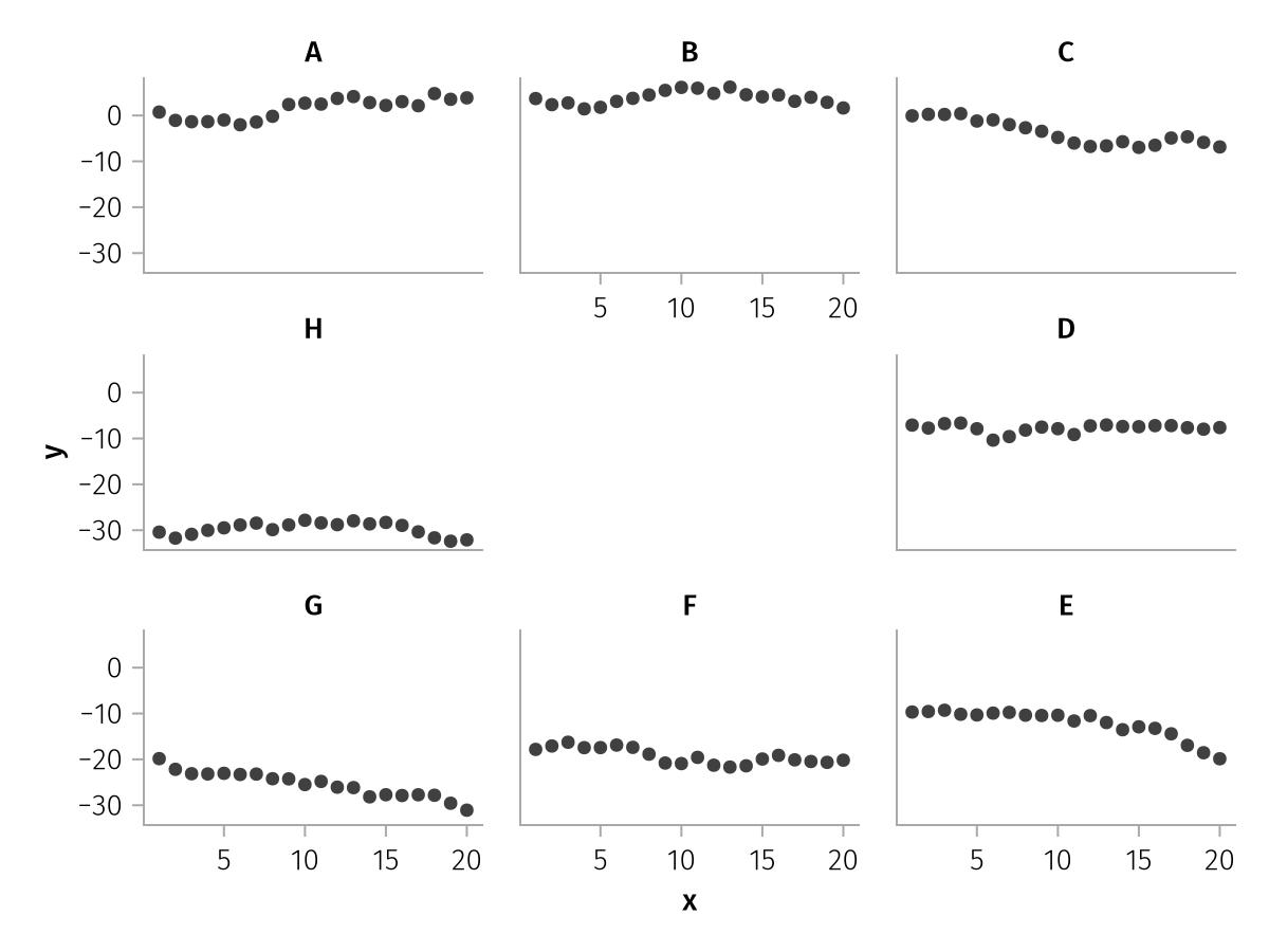 df_a = (; x = 1:9, y = [1, 2, 3, 5, 6, 7, 9, 10, 11], group = repeat(["A", "B", "C"], inner = 3))